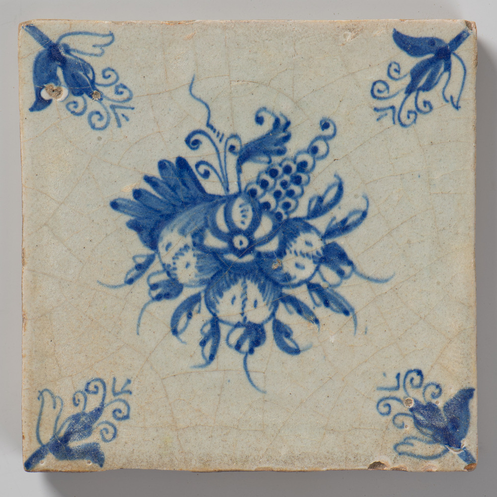 tegel van aardewerk met tinglazuur, voorstellende: h...