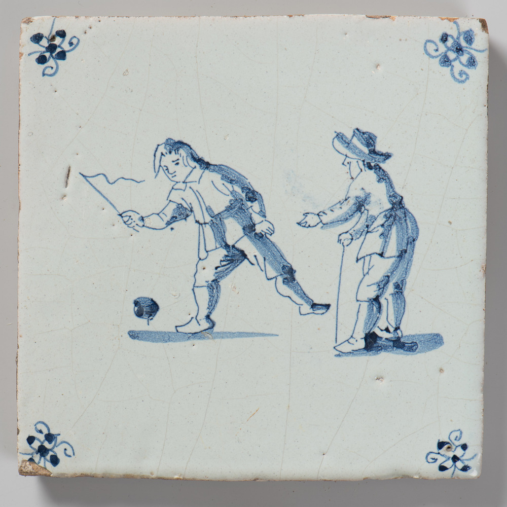 tegel van keramiek met tinglazuur, voorstellende: ru...