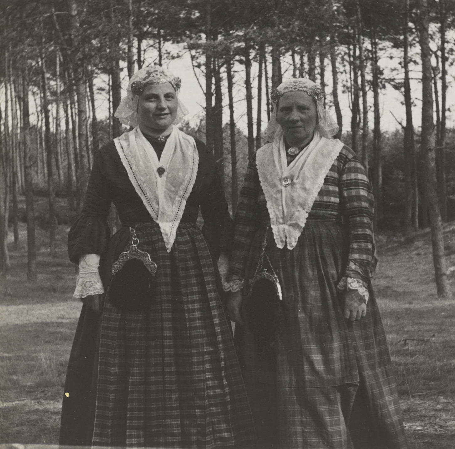 Vrouwen verkleed in Drentse dracht, 1948 (zwart-wit ...