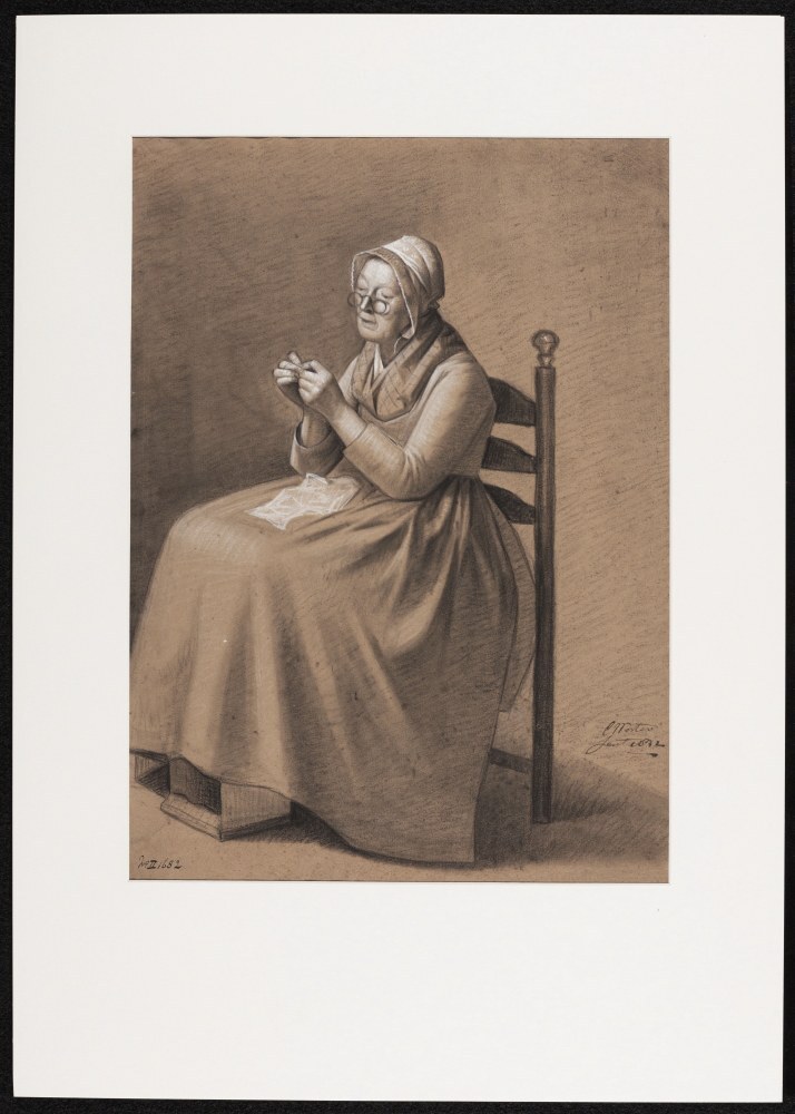Zittende vrouw met handwerkje