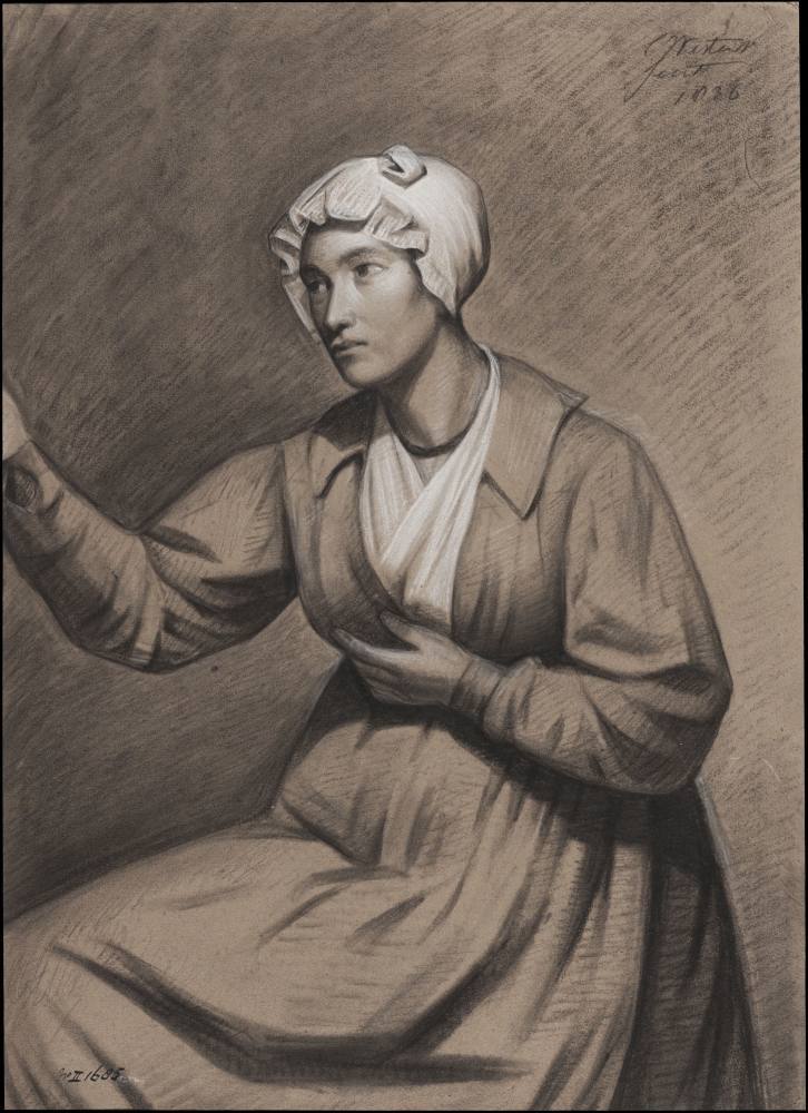 Studie van oude vrouw, ten halve lijve, met muts