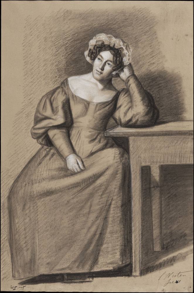 Zittende jonge vrouw, keukenmeid