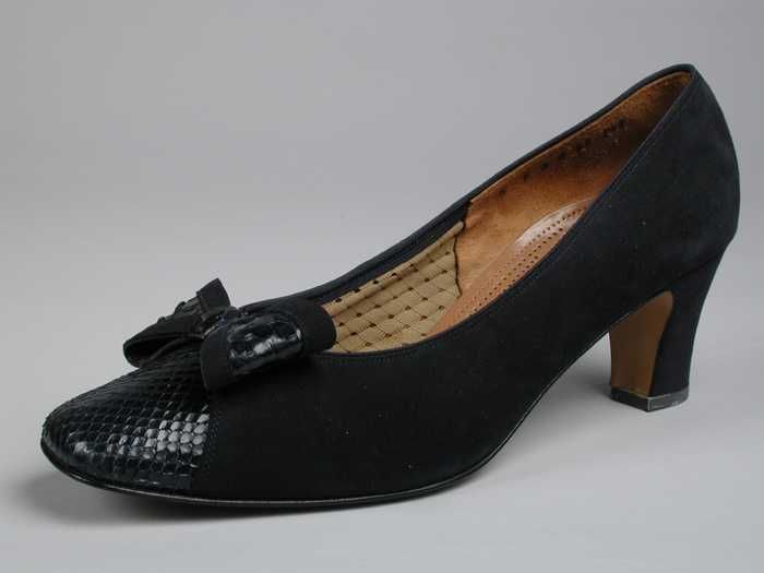 Okergele leren pumps met zwarte suède neus, queenie ...