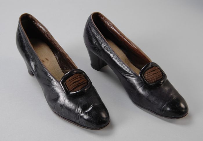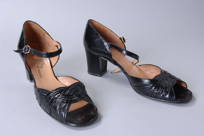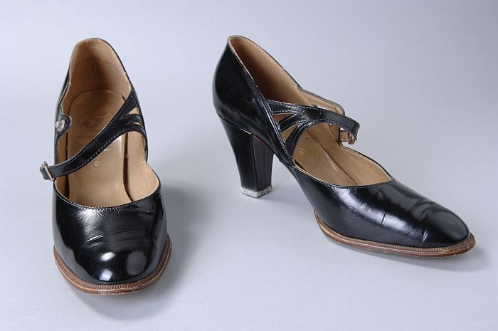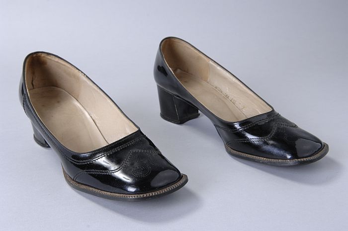Zwarte lakleren hakschoenen, wreefband splitst naar ...
