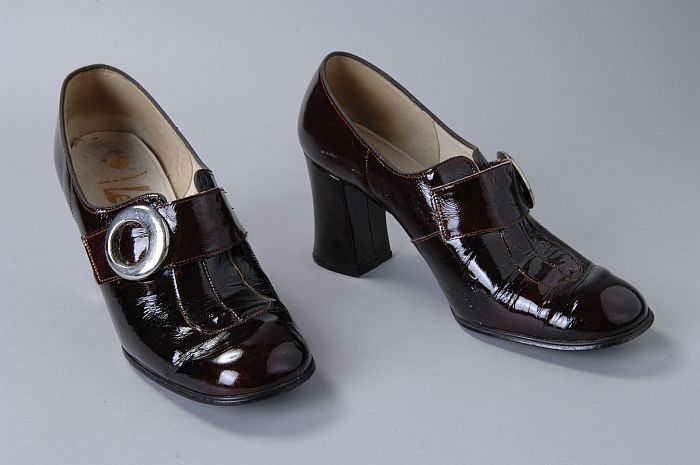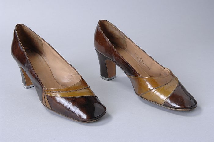 Bruine lakleren pumps met opgeplakte tong van bruine...