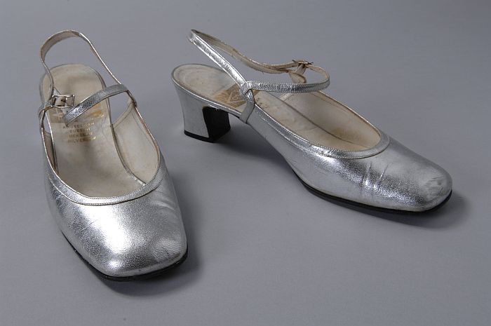 Zilverkleurige leren slingbacks met hielbandje en wr...