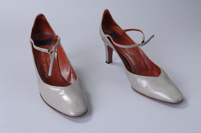 Parelgrijze lakplastic slingbacks met bandjes openge...