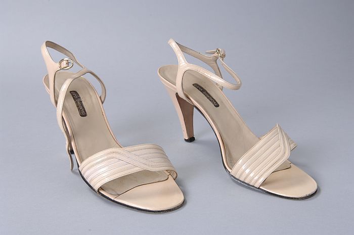 Roomwitte lakleren sandalettes, enkelbandje met gesp...