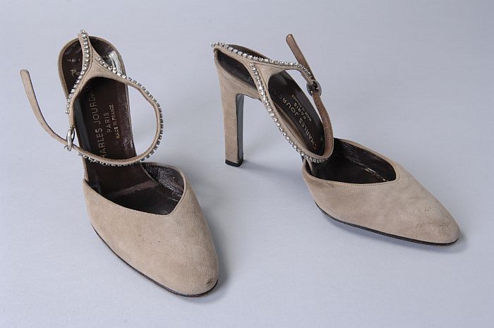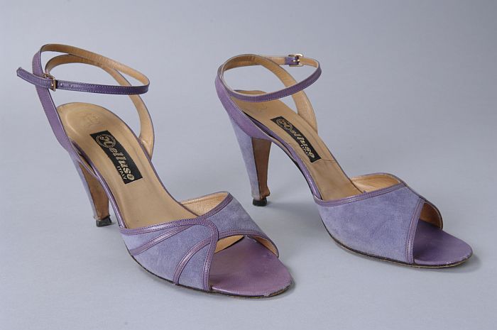 Paarse suède hakschoenen met wreefbandje met gespslu...
