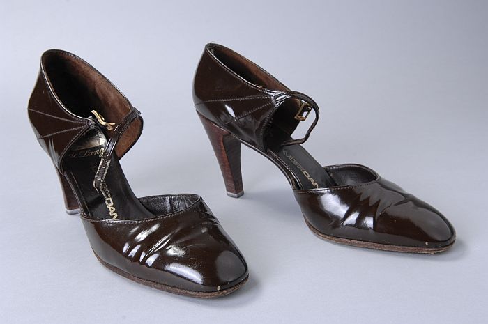 Donkerbruine lakleren open hakschoenen met dichte ne...