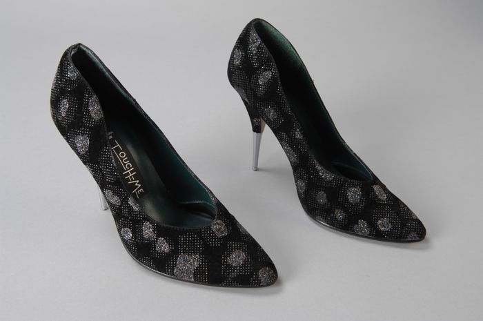 Zwarte lakleren pumps met stiksels, perforatie op de...