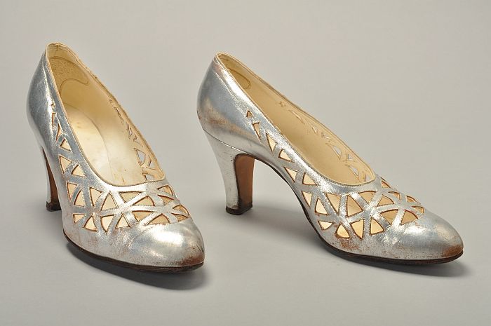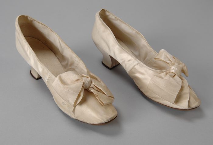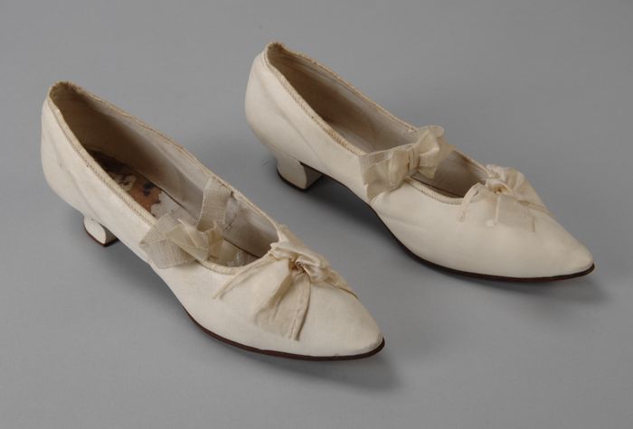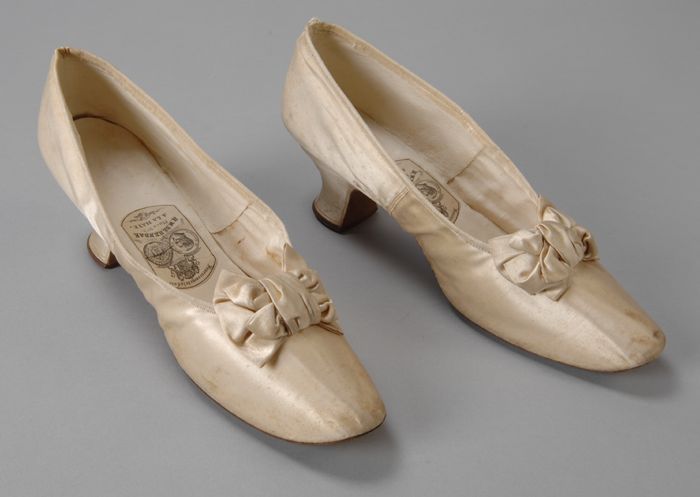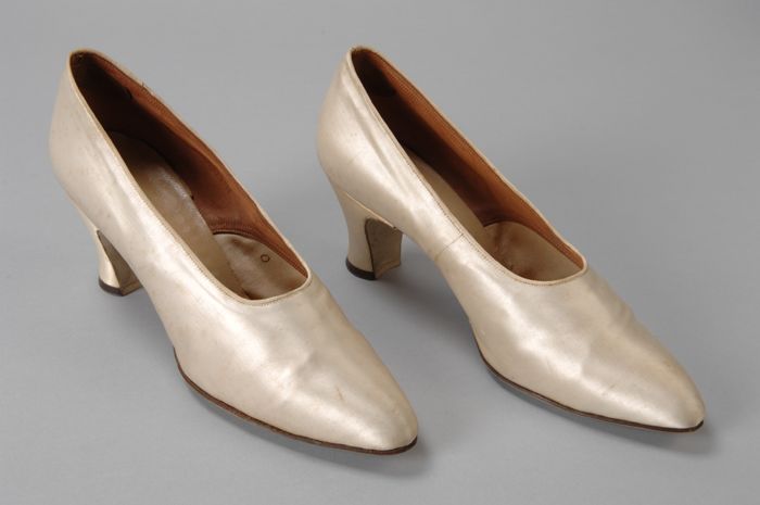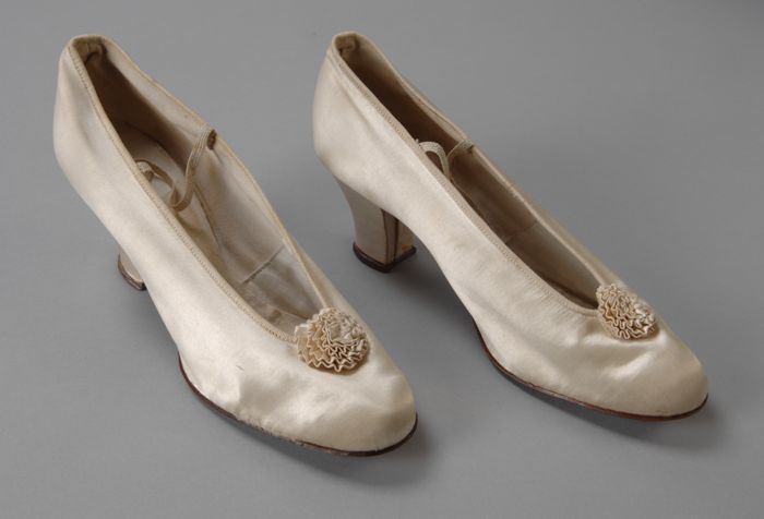 Roomwitte ribszijden pumps met waaiervormige decorat...