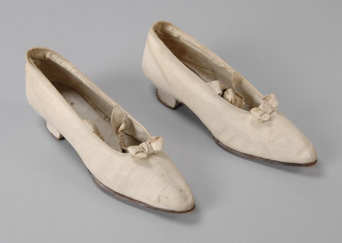 Roomwitte satijnen slingbacks, spitse neus bekleed m...