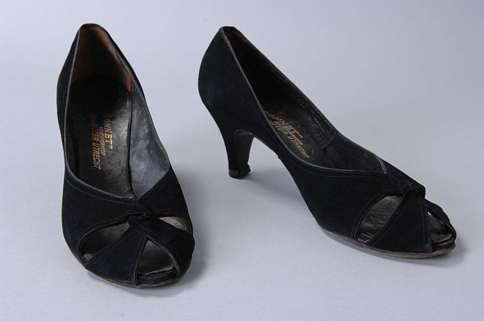 Zwarte pumps, gevlochten met strookjes imitatie lakl...