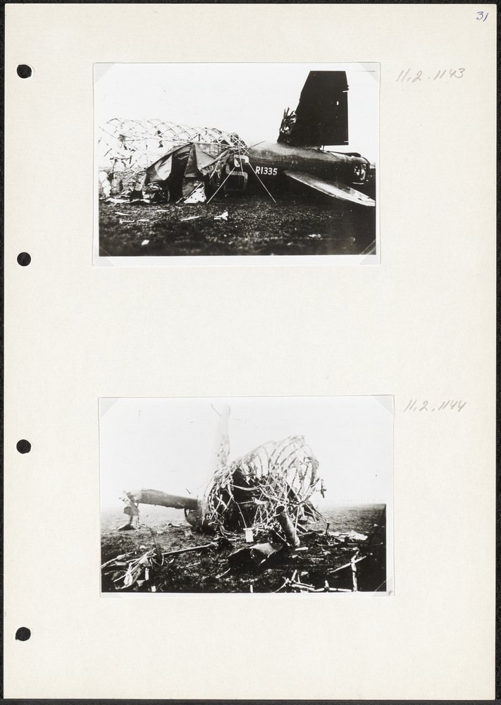 Foto van wrak van Vickers Wellington. Tekst achterop...
