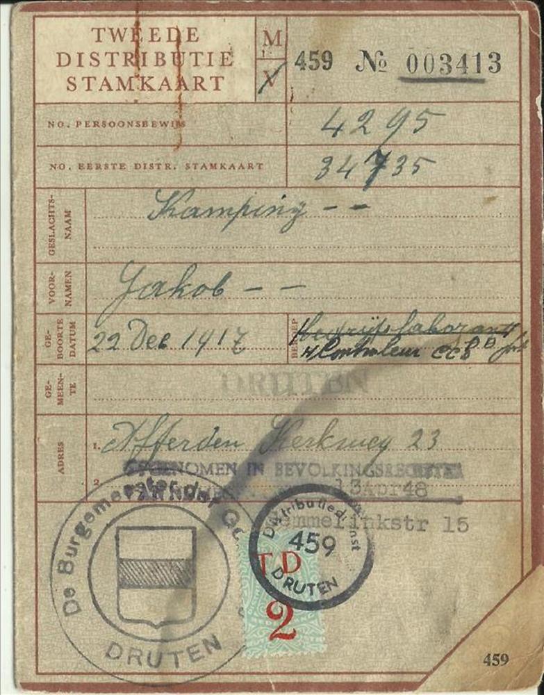 Tweede Distributiestamkaart van : Kamping, Jacob