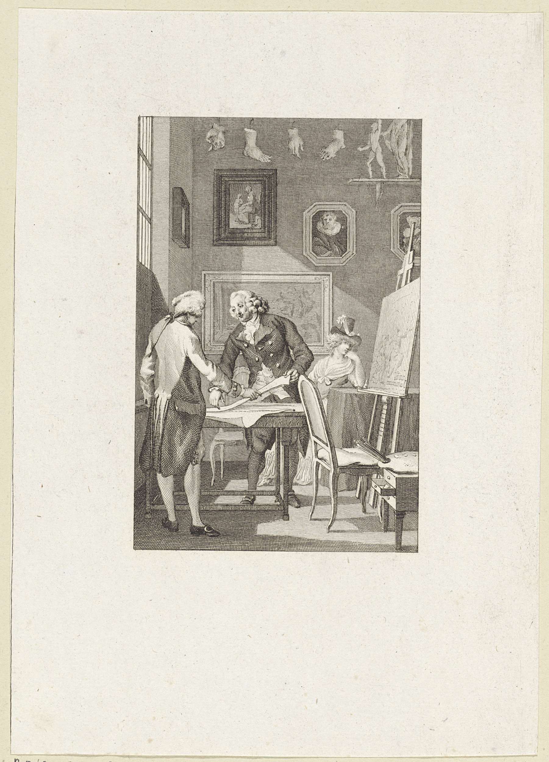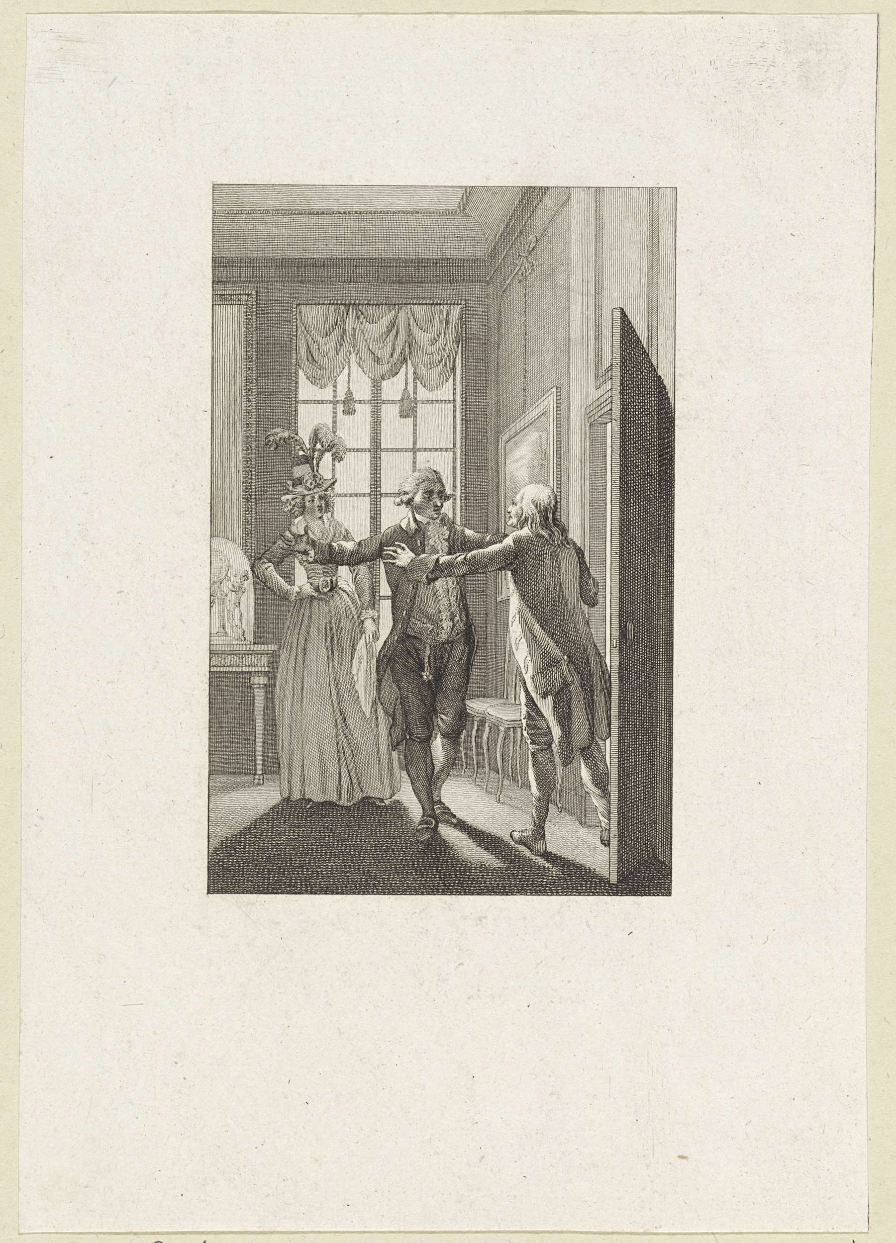 Vrouw toont een man een portret, mogelijk van Antoni...