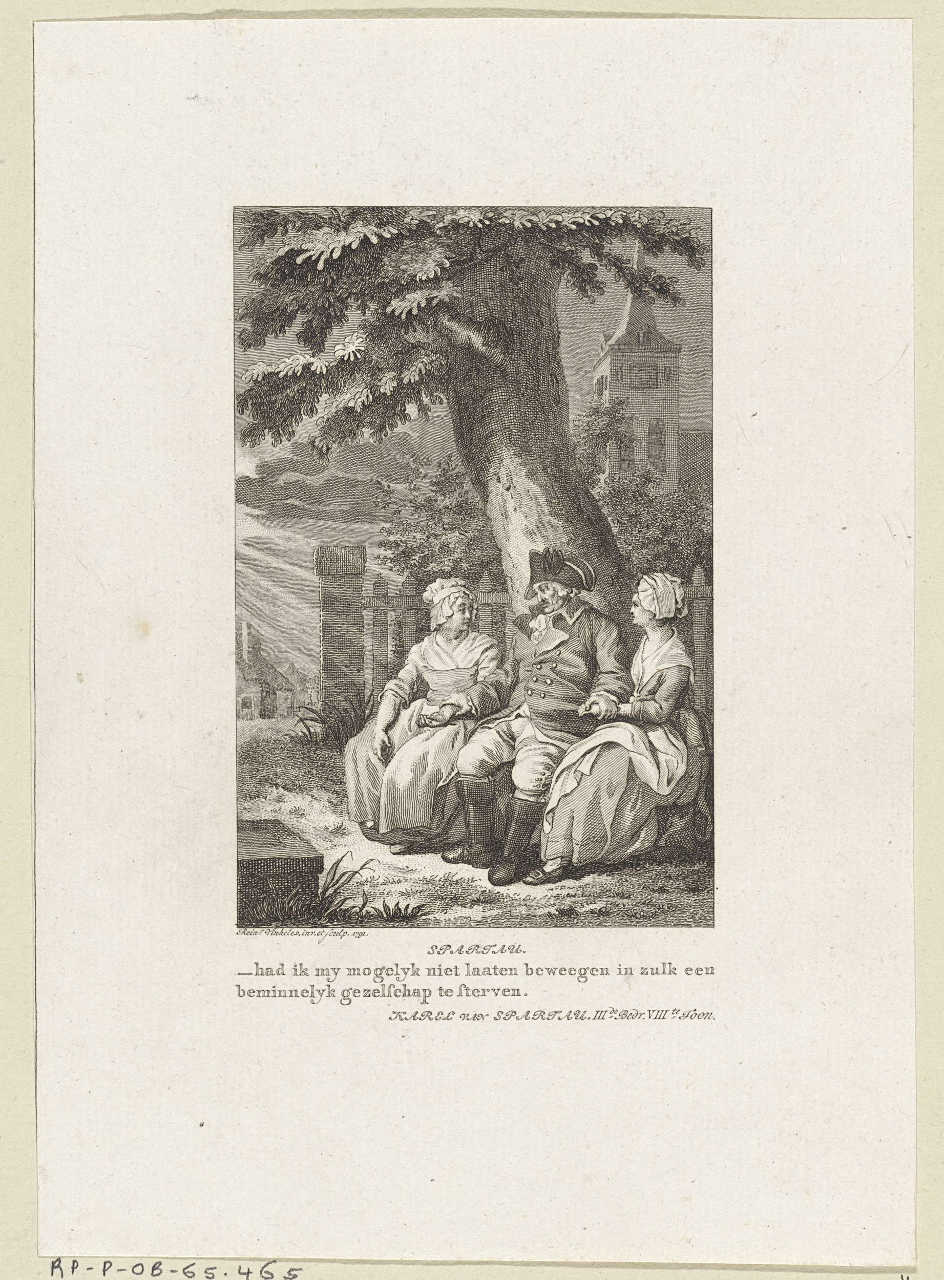Karel van Spartau zit tussen twee dames onder een boom