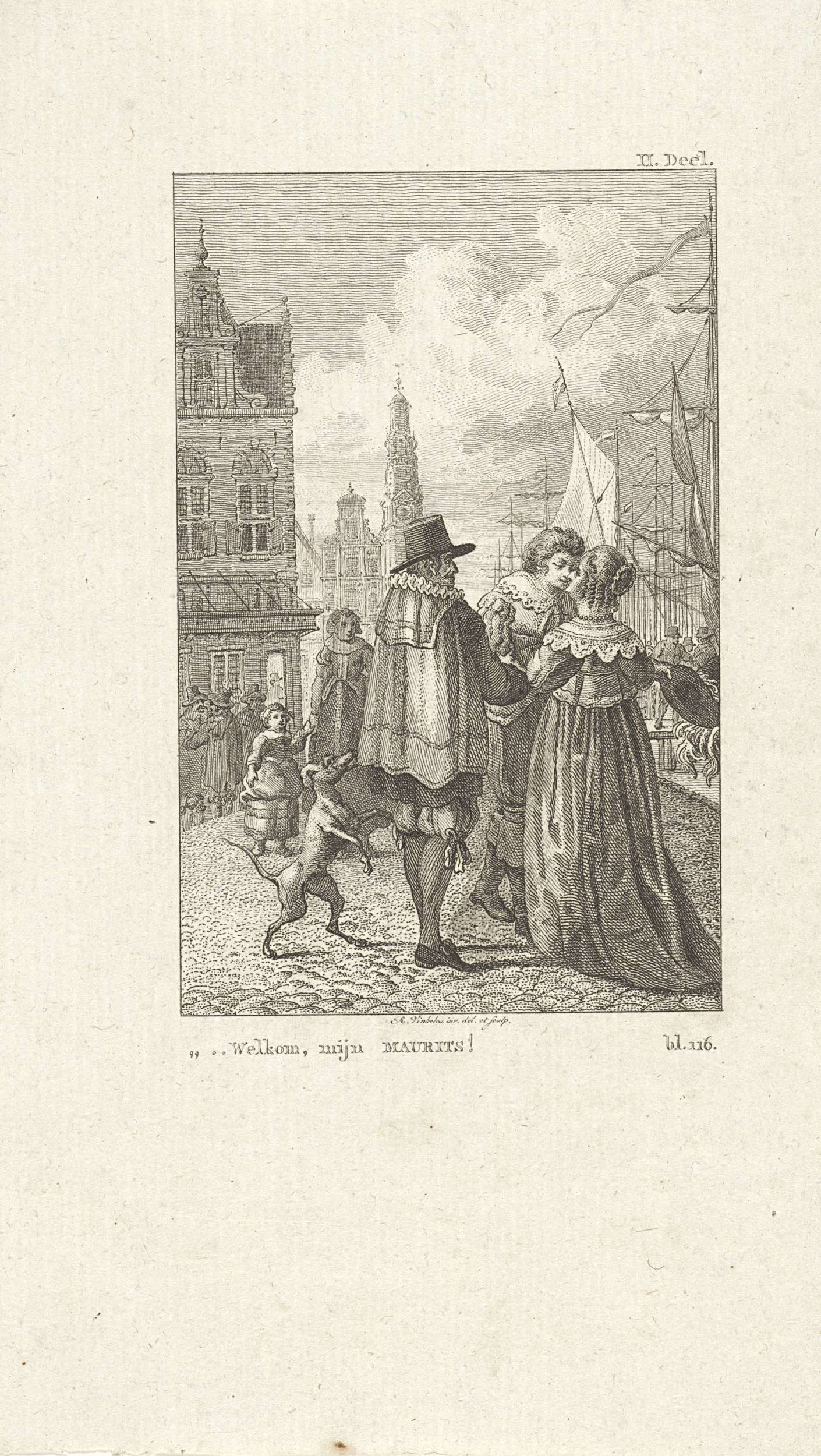 Op een kade wordt Maurits welkom geheten