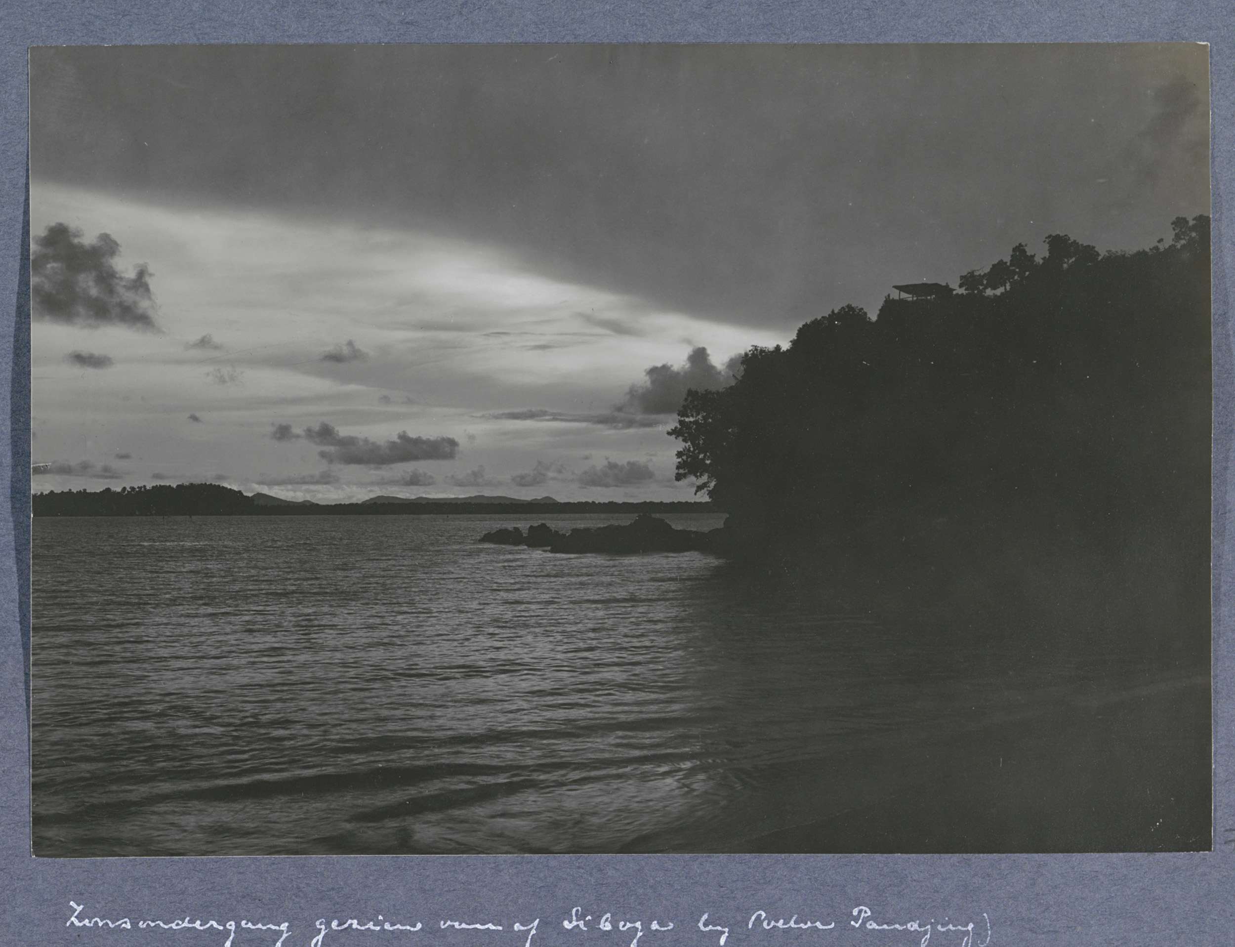 Zonsondergang boven een water op Sumatra, gezien van...