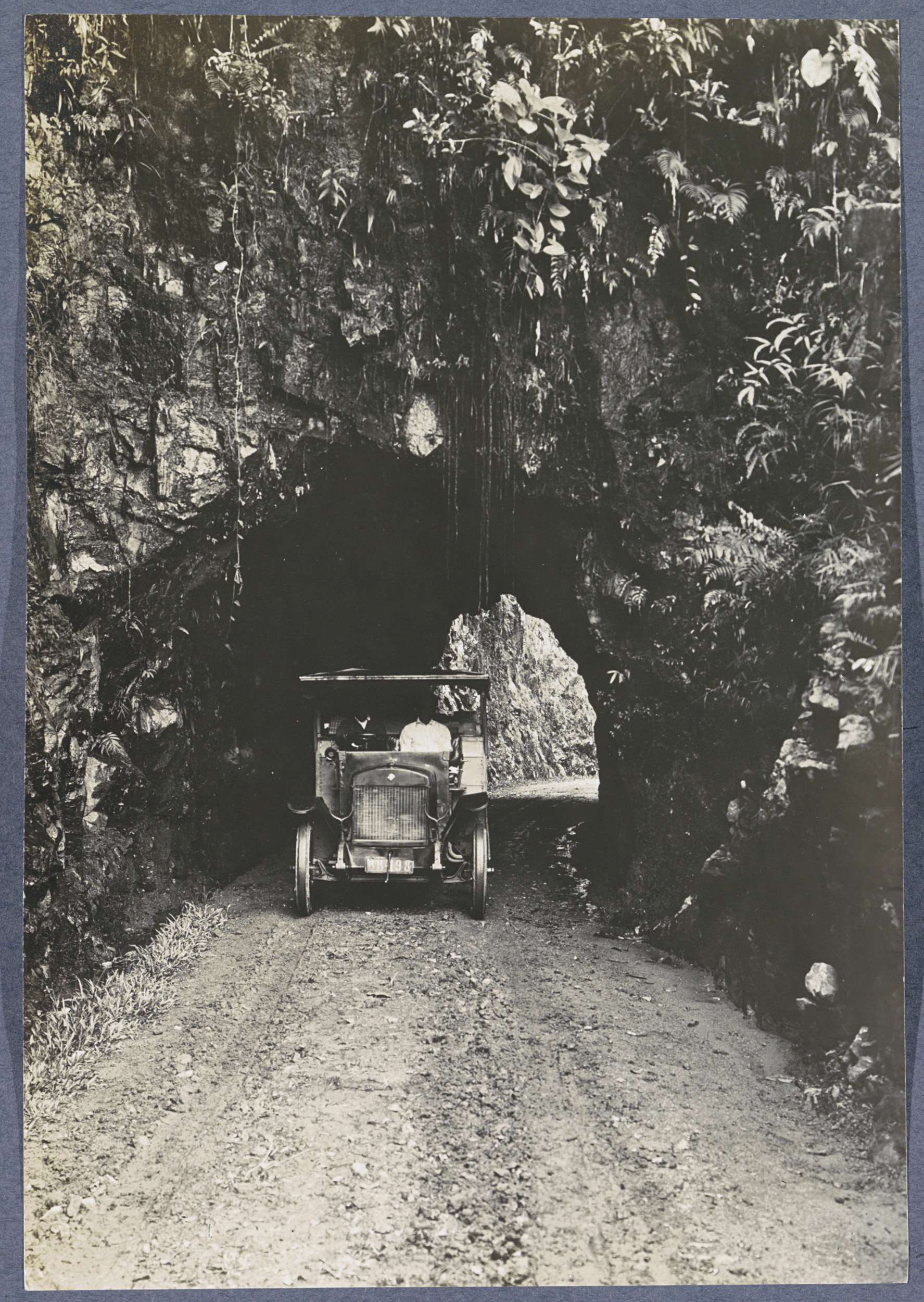 Auto passeert tunnel op de weg van Taroetoeng naar S...