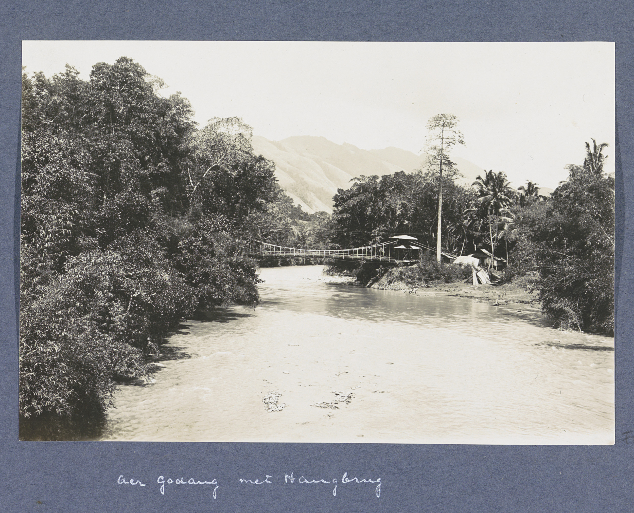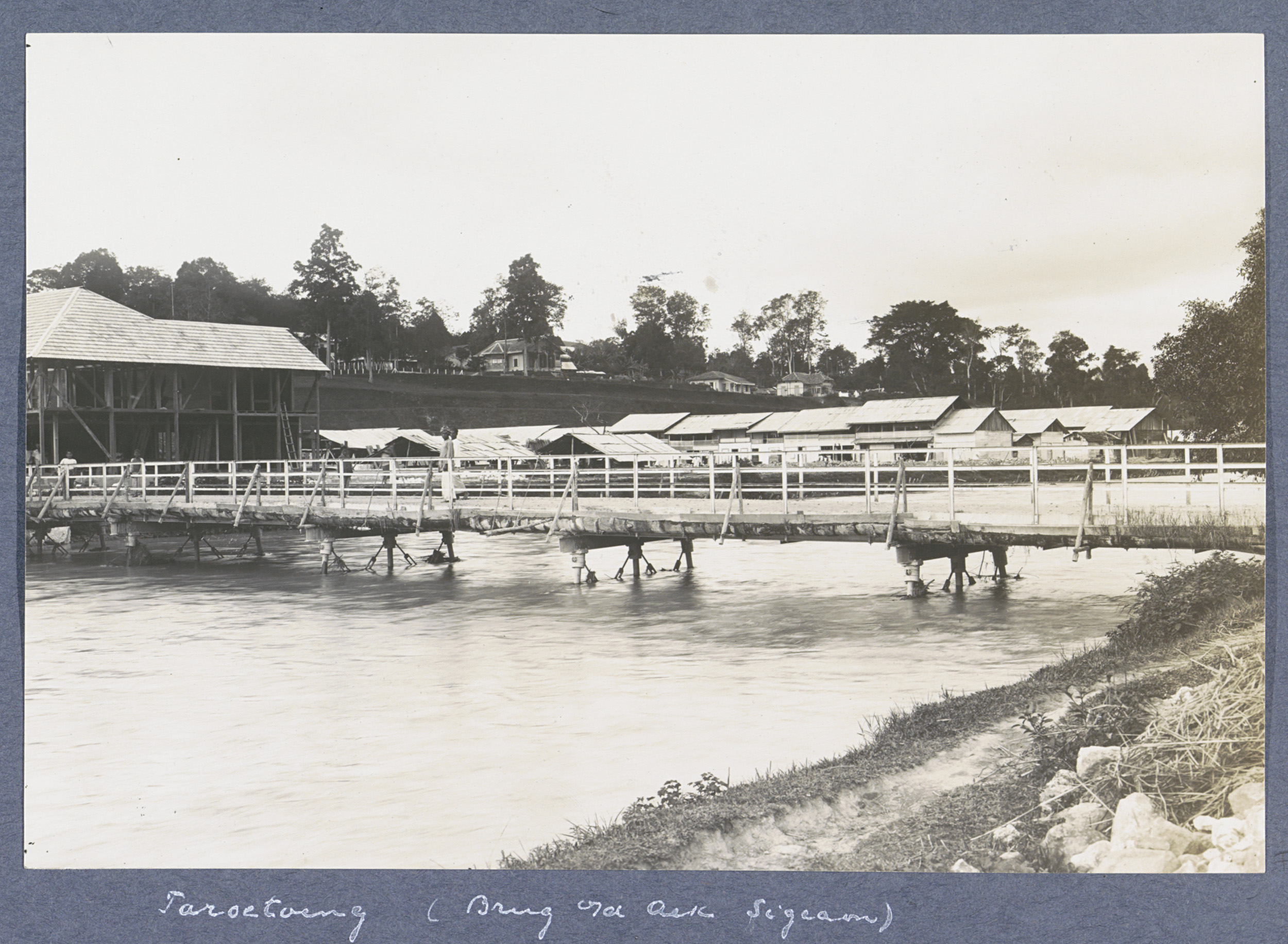 Brug over een rivier te Taroetoeng op Sumatra