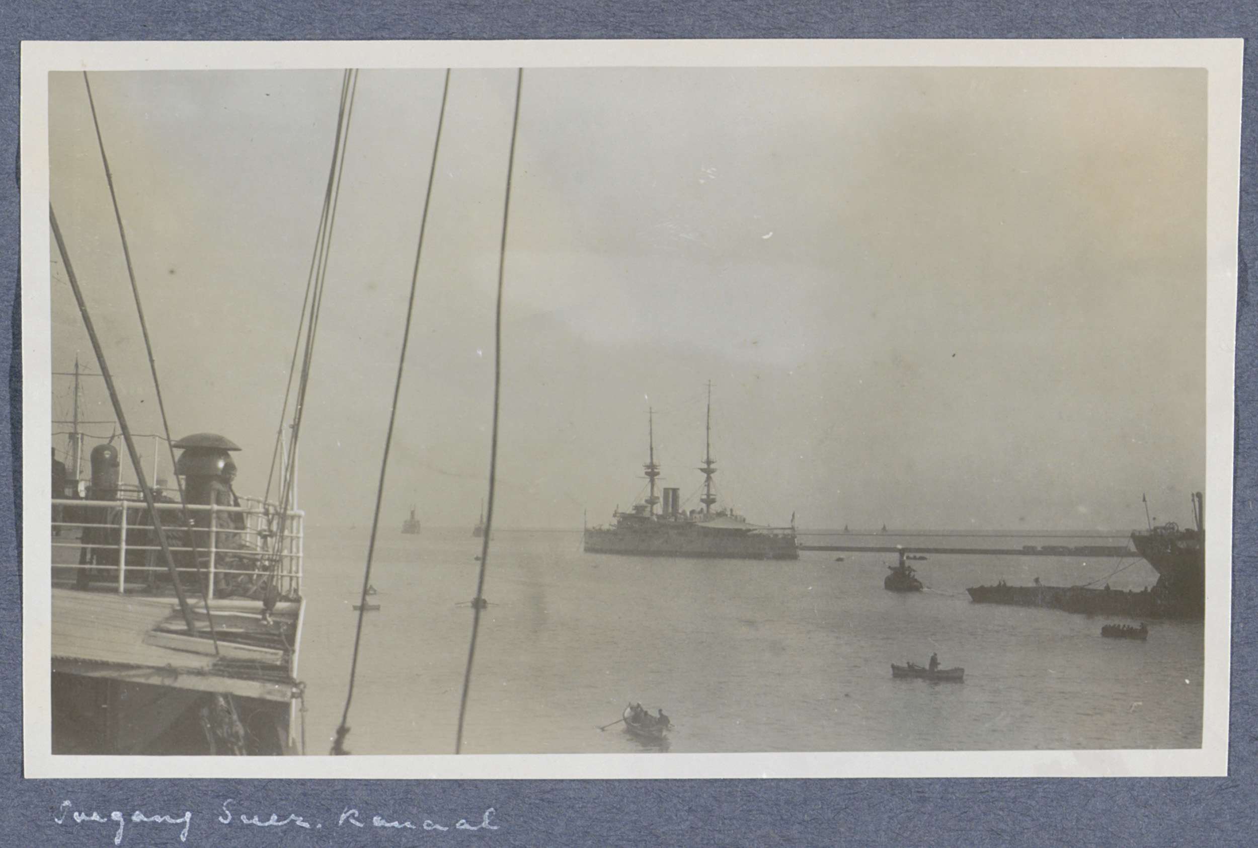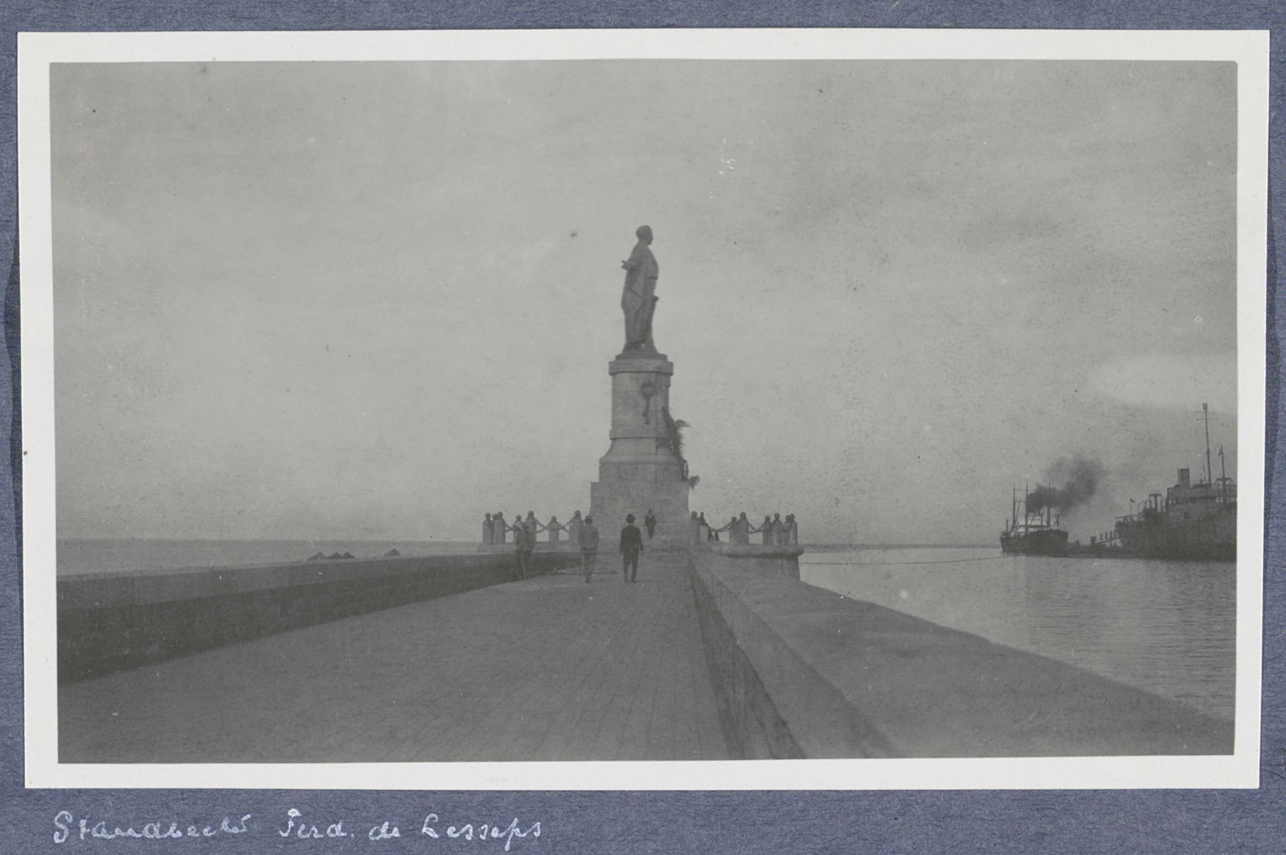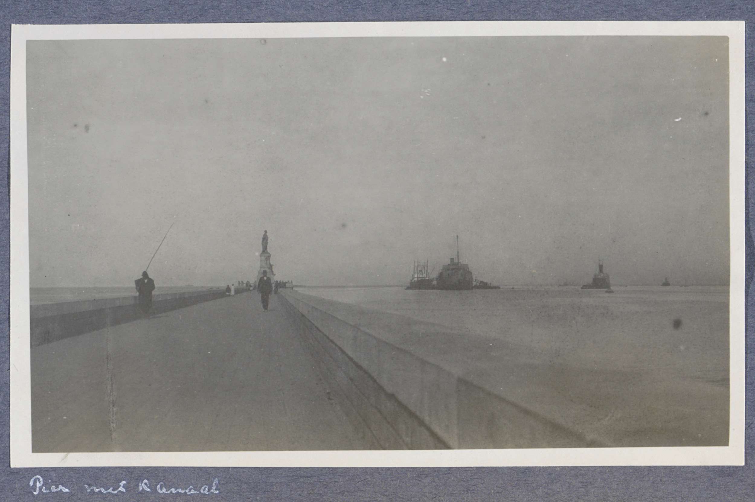Pier langs het Suezkanaal in Port Said met op de kop...