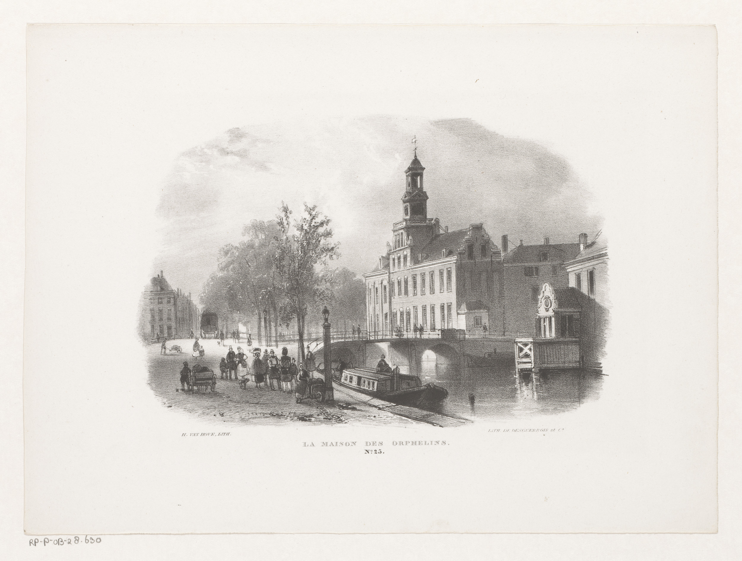 Gezicht op gracht en weeshuis in Den Haag