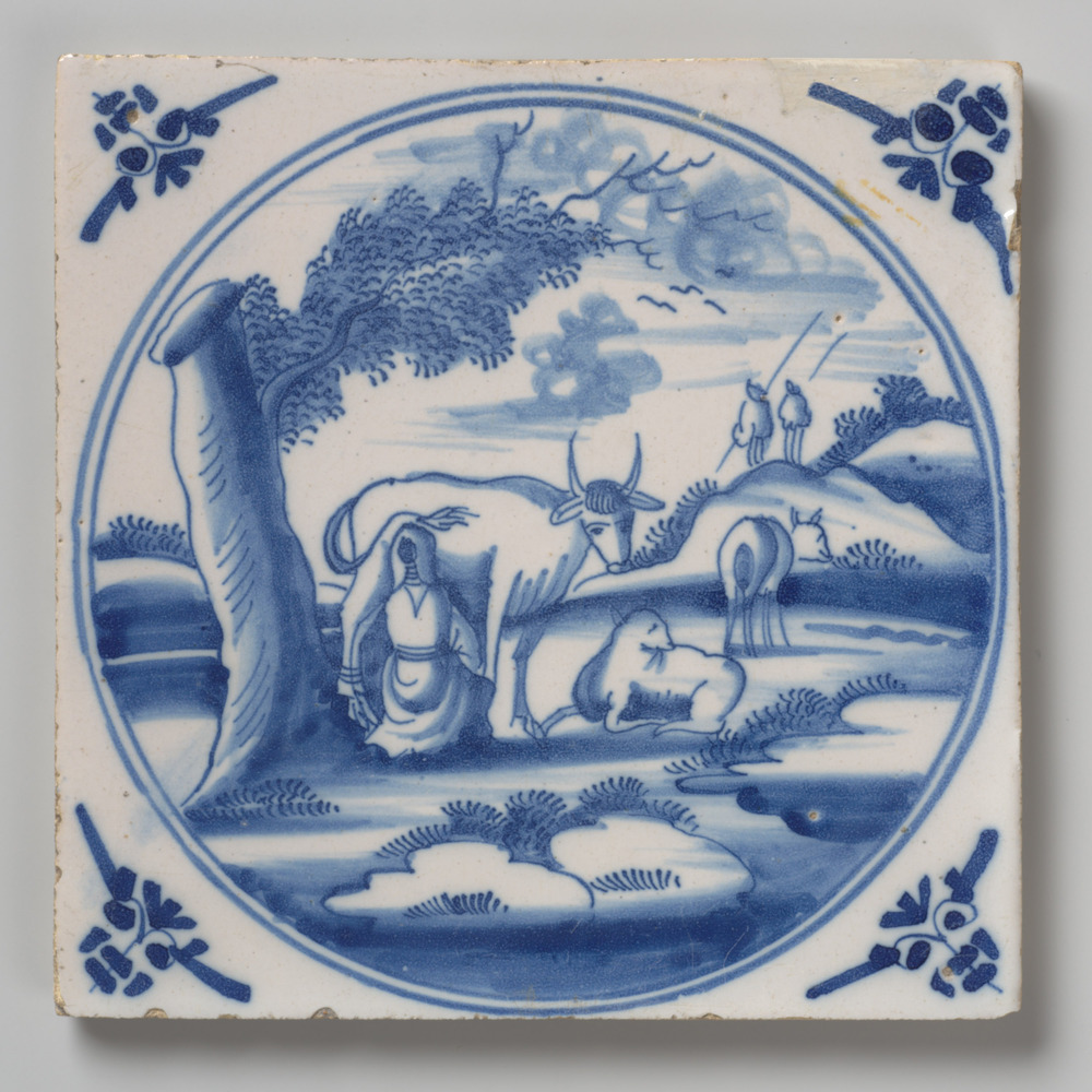 tegel van aardewerk met tinglazuur, voorstellende: h...