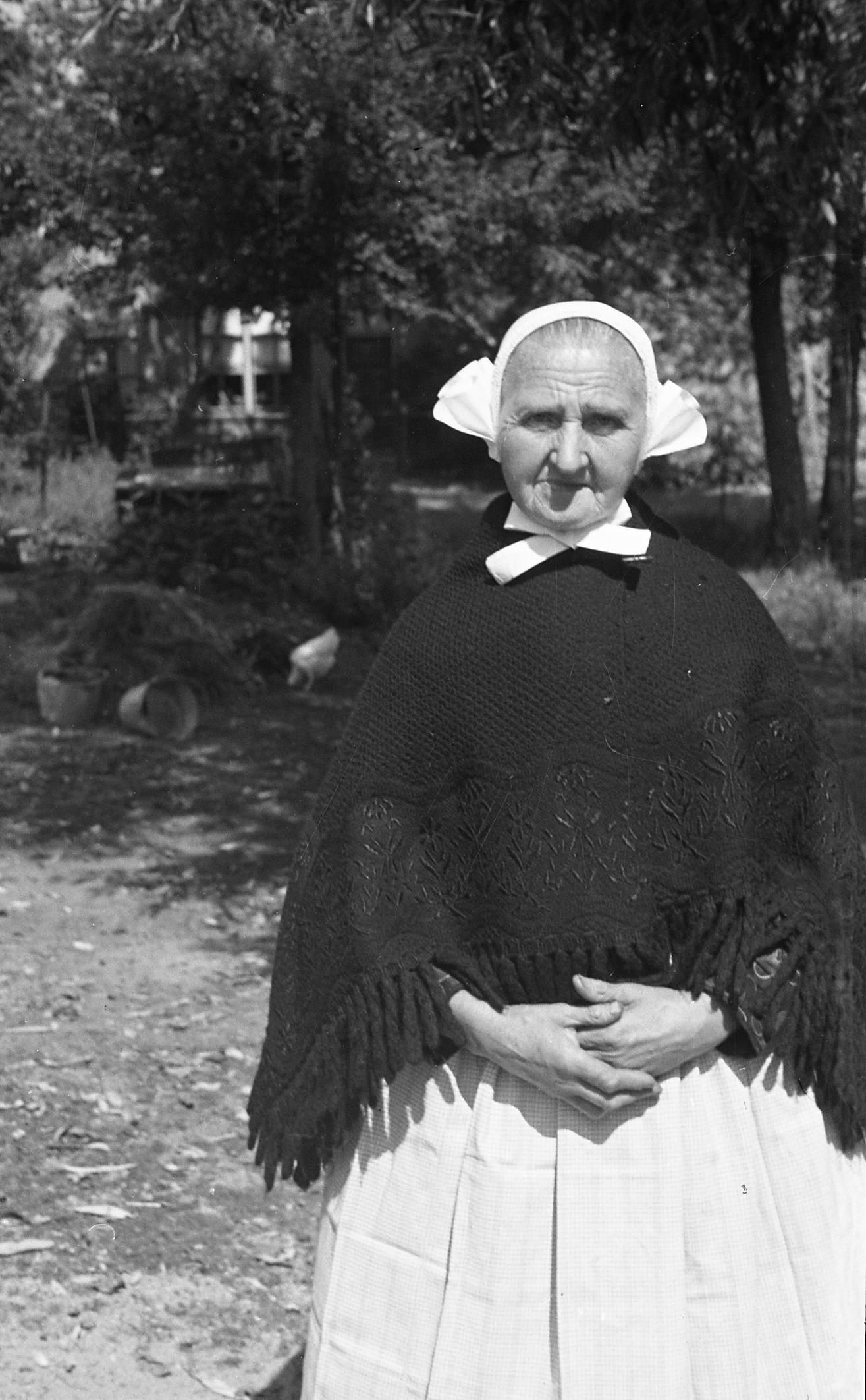 Vrouw in daagse dracht, Assendelft, 1947 (zwart-wit ...