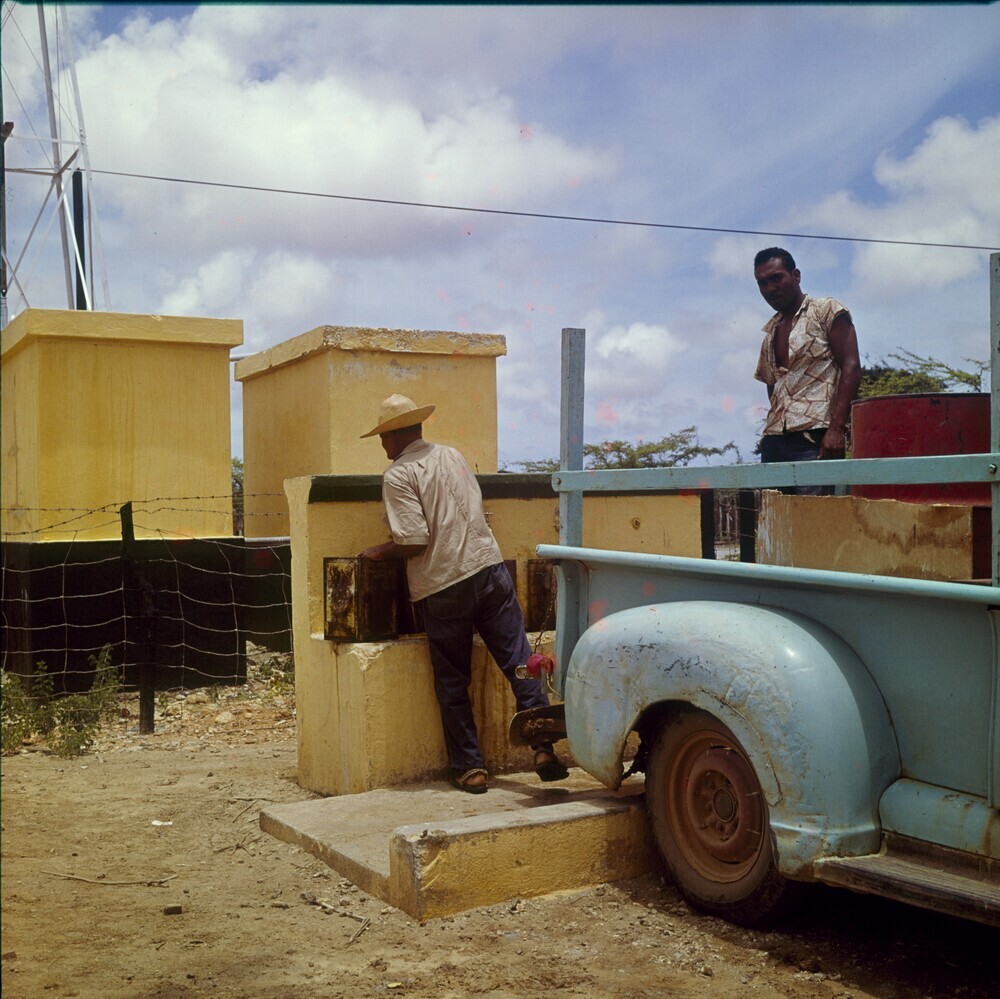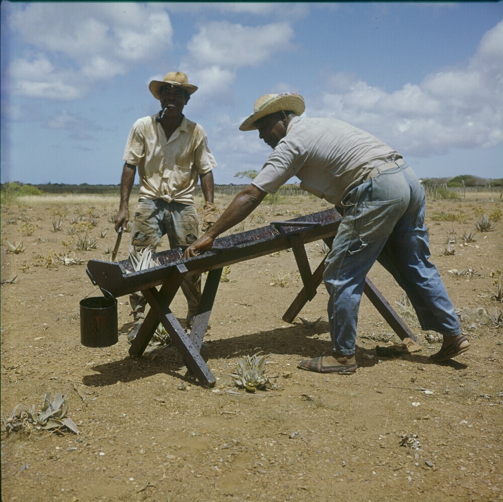 Landarbeiders bewerken de grond op Plantage Aruba