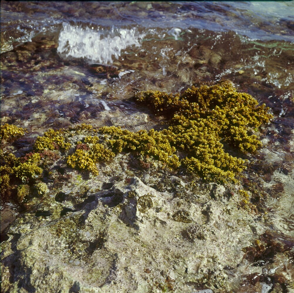Zeewier op rotsen