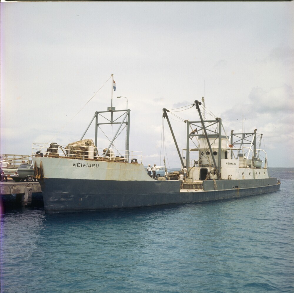 Kustvaarder, aangemeerd bij de pier te Kralendijk