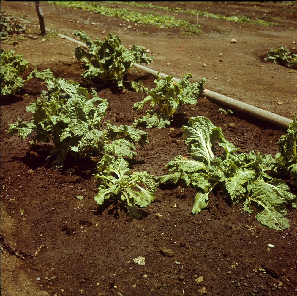Groentebed met spinazie op Plantage Aruba