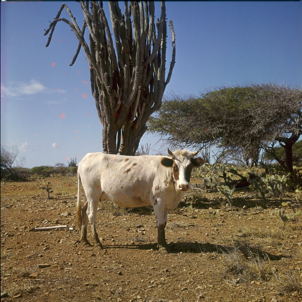 Koe op Plantage Bolivia, met cactussen en op de acht...