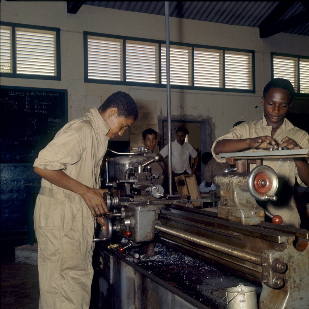 Leerlingen van de Lagere Technische School bij een d...
