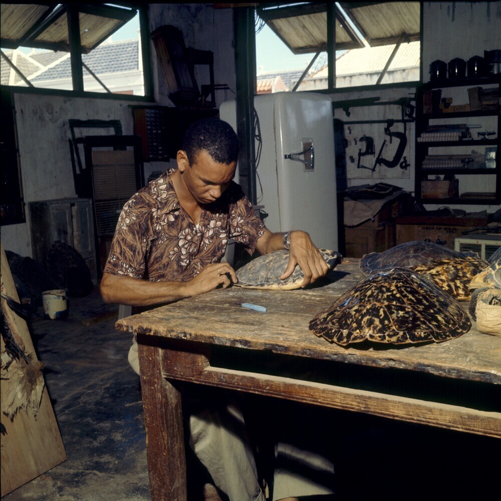 Man maakt souveniers van het schild van zeeschildpad...