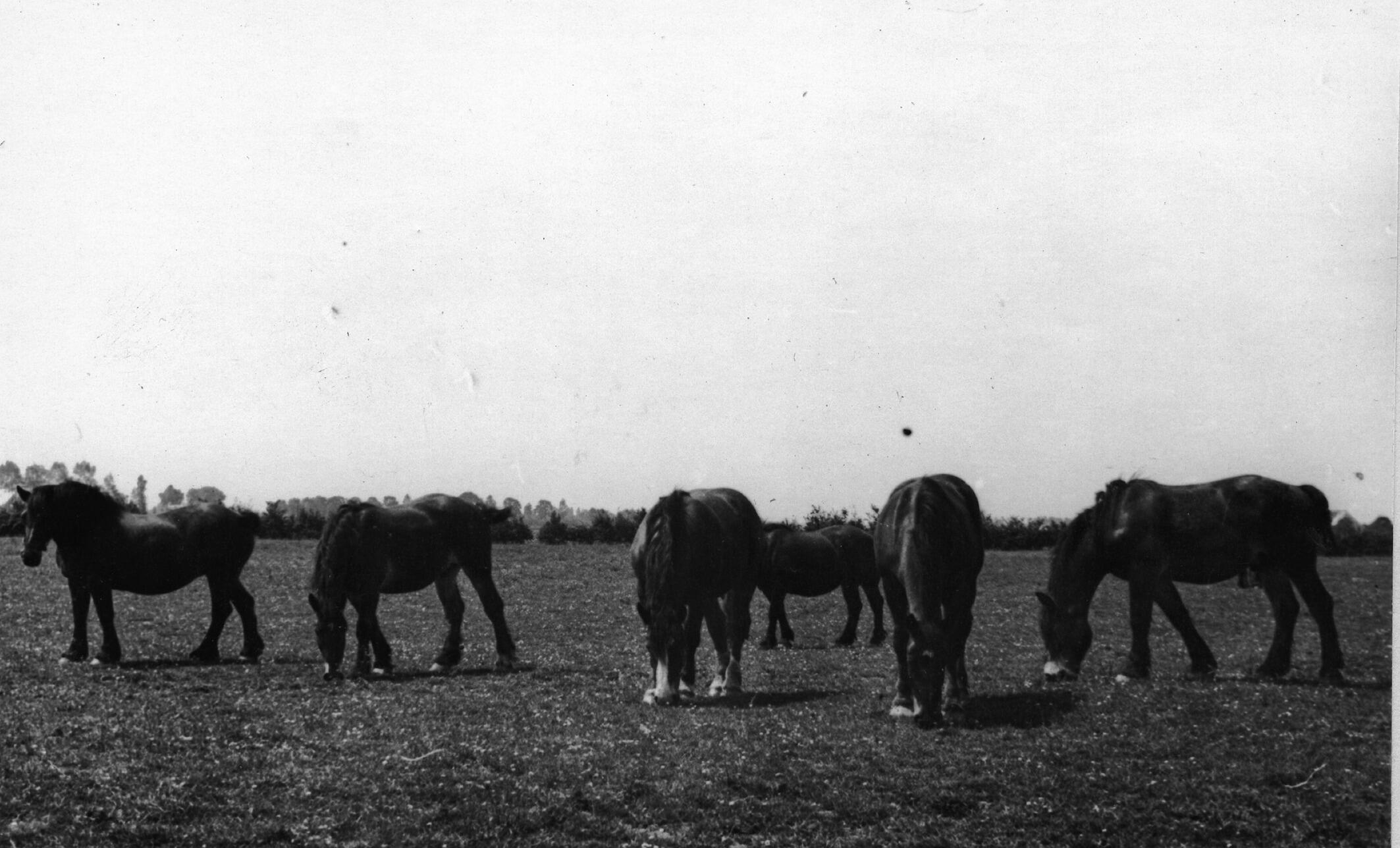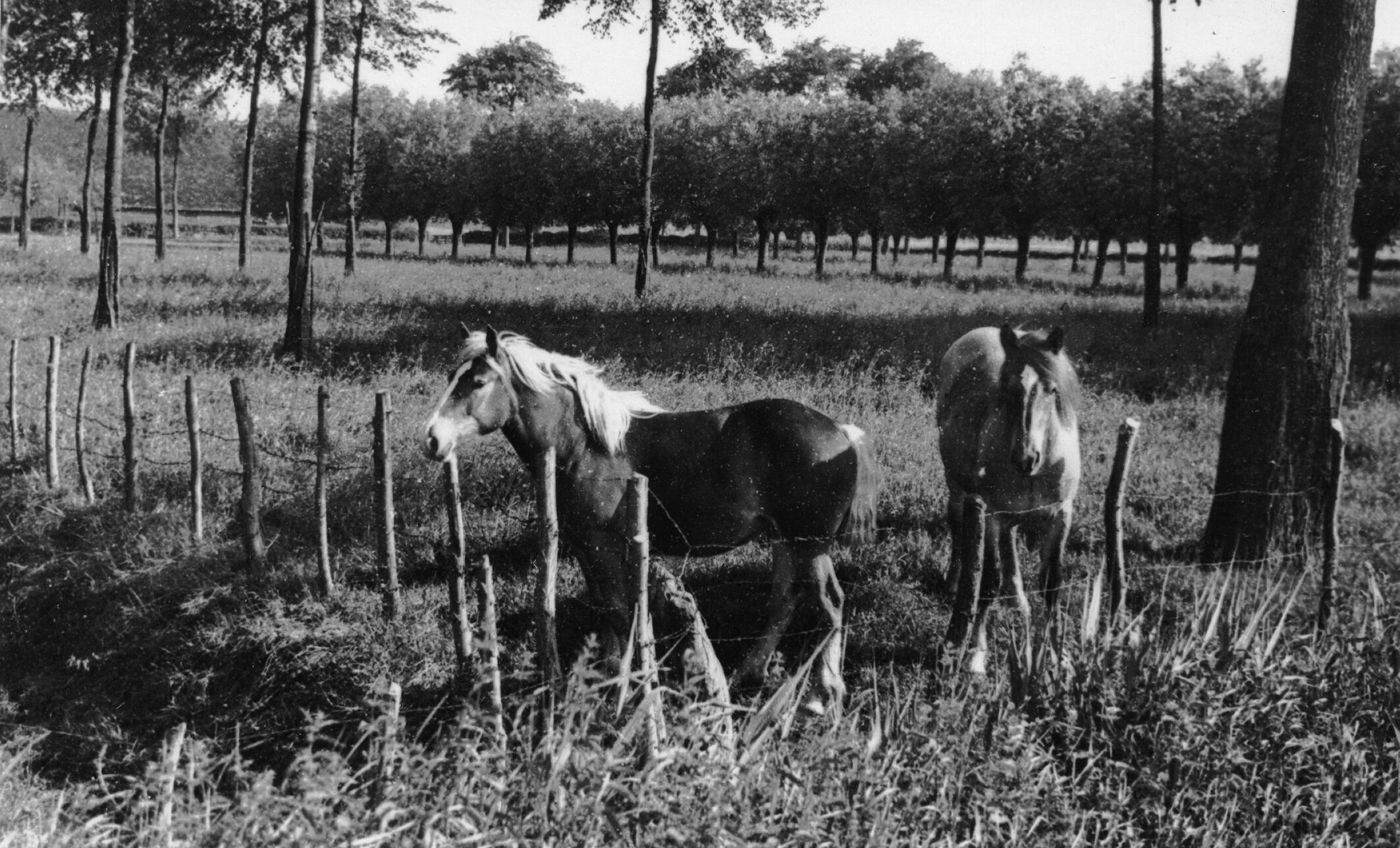Paarden in de wei, Schoondijke, 1936 (zwart-wit foto)