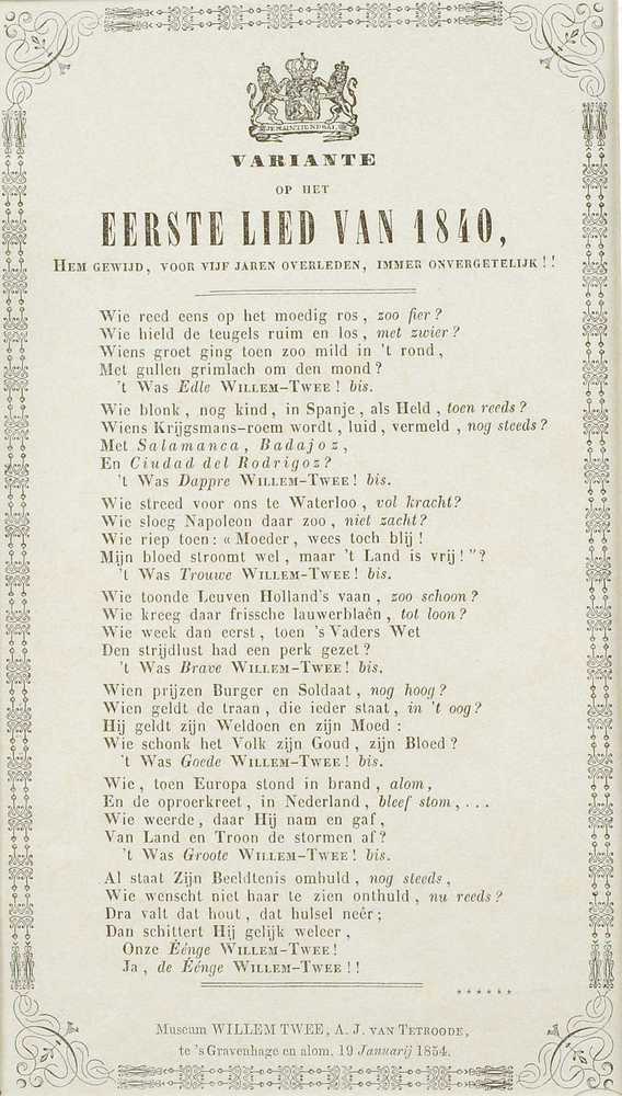 gedicht variatie op het eerste lied van 1840; Leve d...