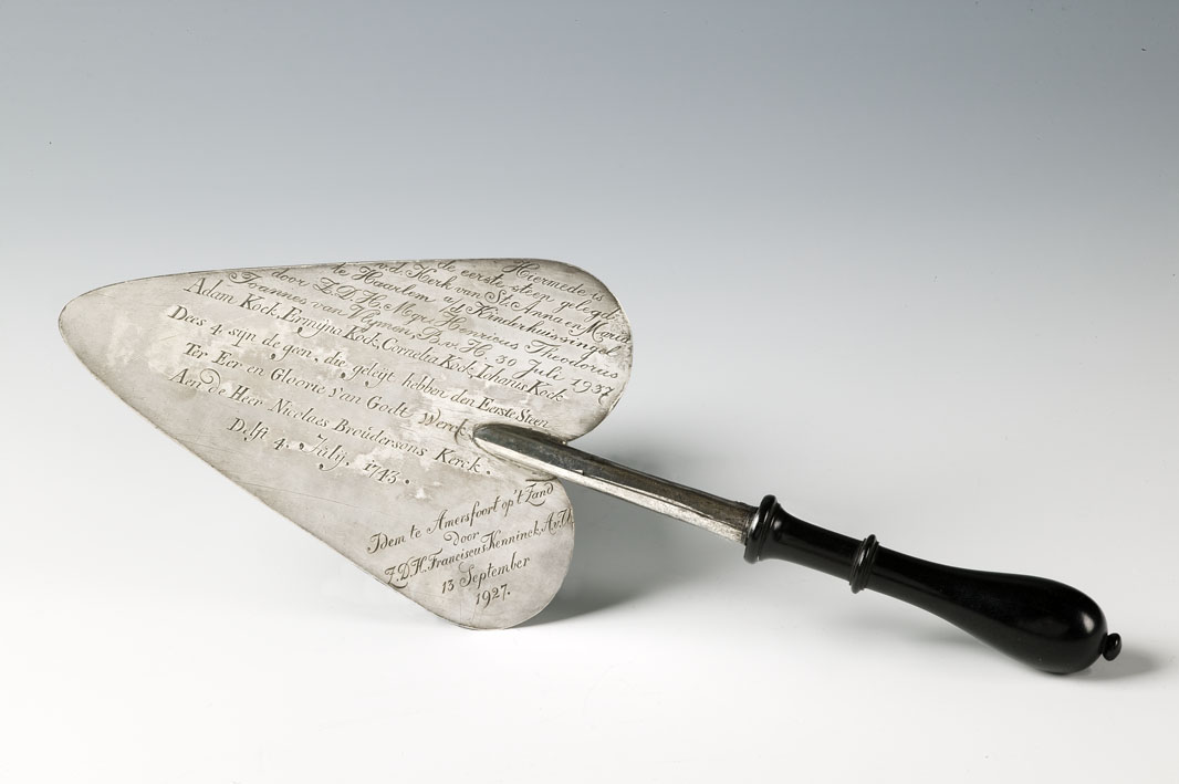 Troffel voor eerstesteenlegging, ebbenhouten handvat...