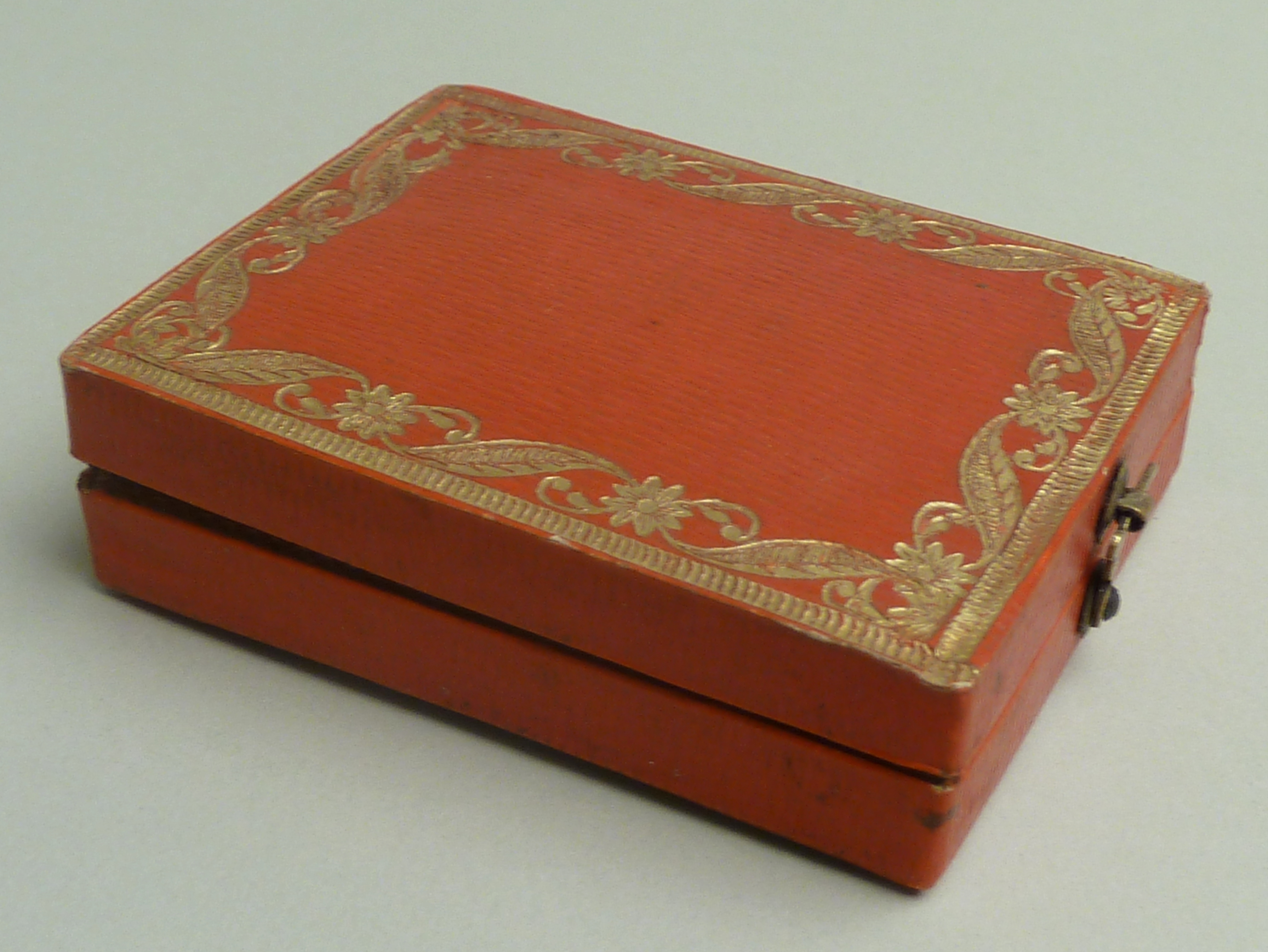 Doosje met gewichten, deksel versierd met bloem- en ...