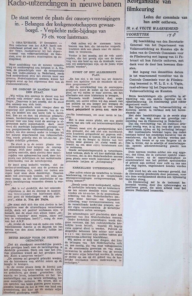 Vel: Algemeen Nederlandsch Persbureau, mededelingen,...