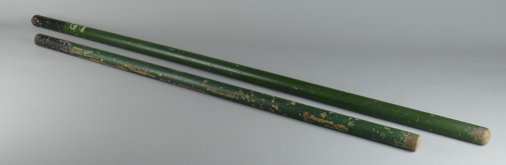 brandweerstokken van hout in de kleuren groen en zwa...