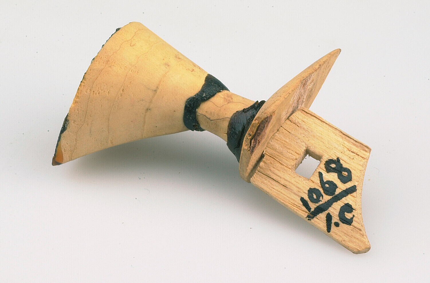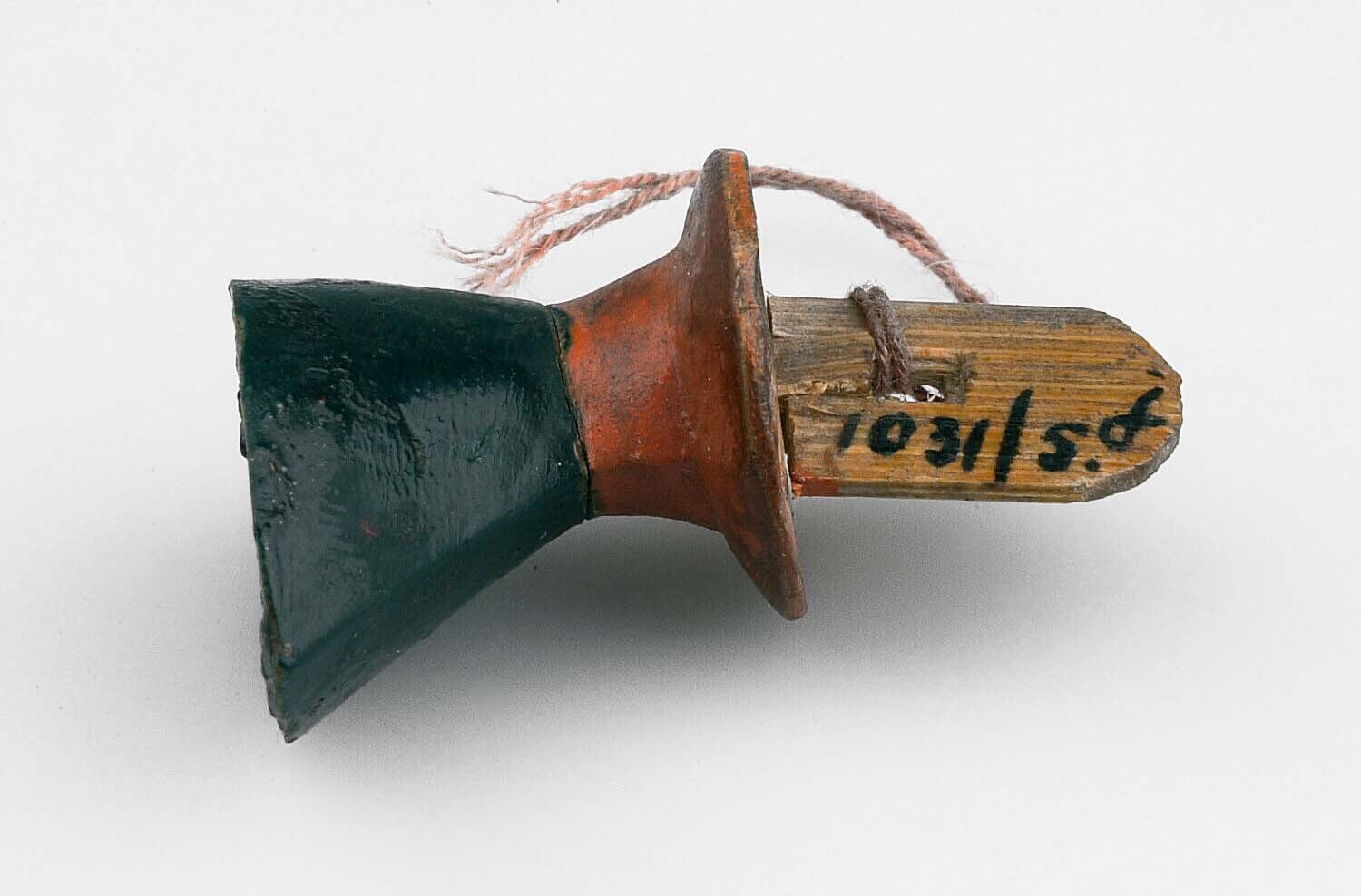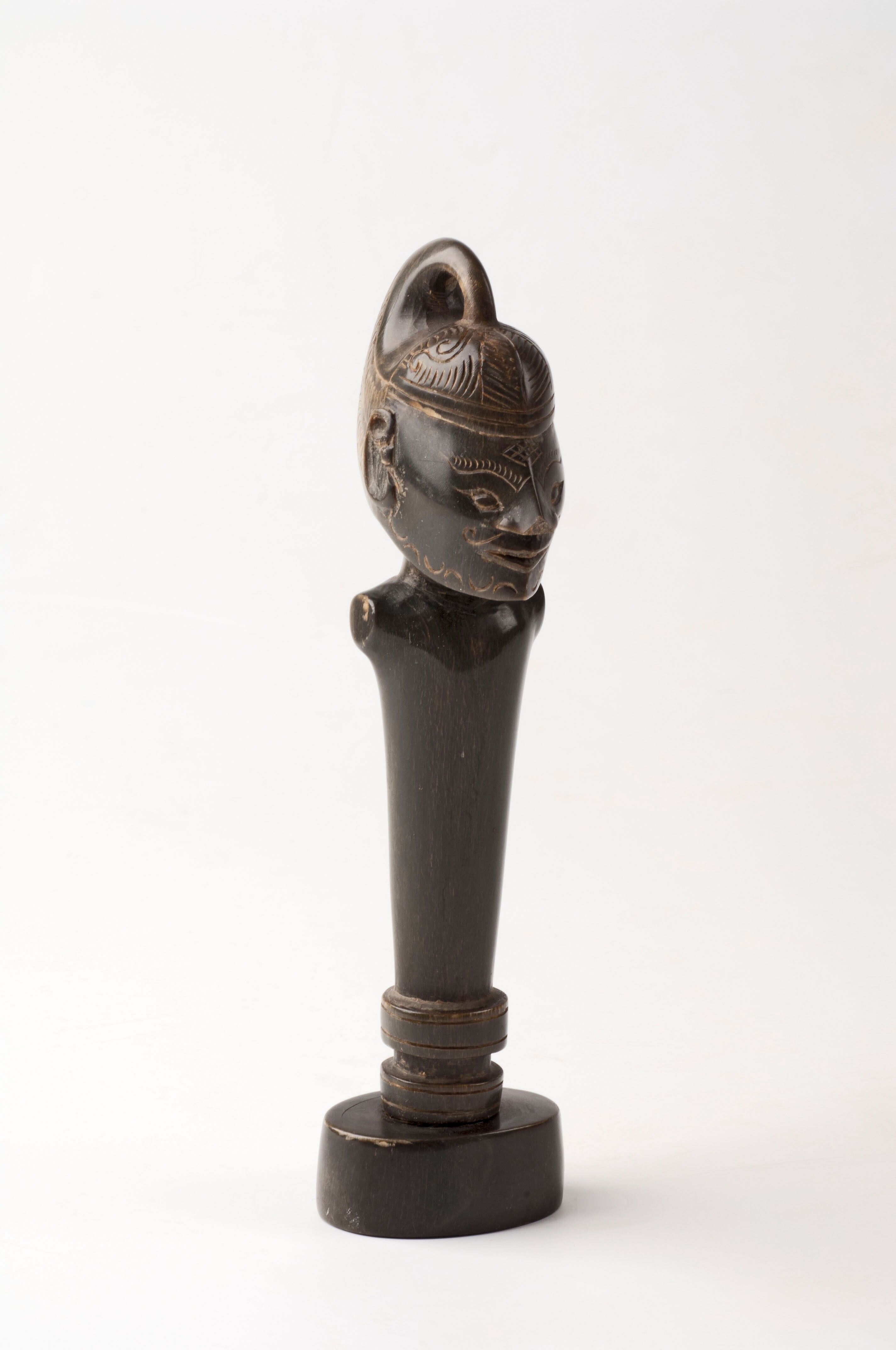 Hoornen stempel met wayangpopkop