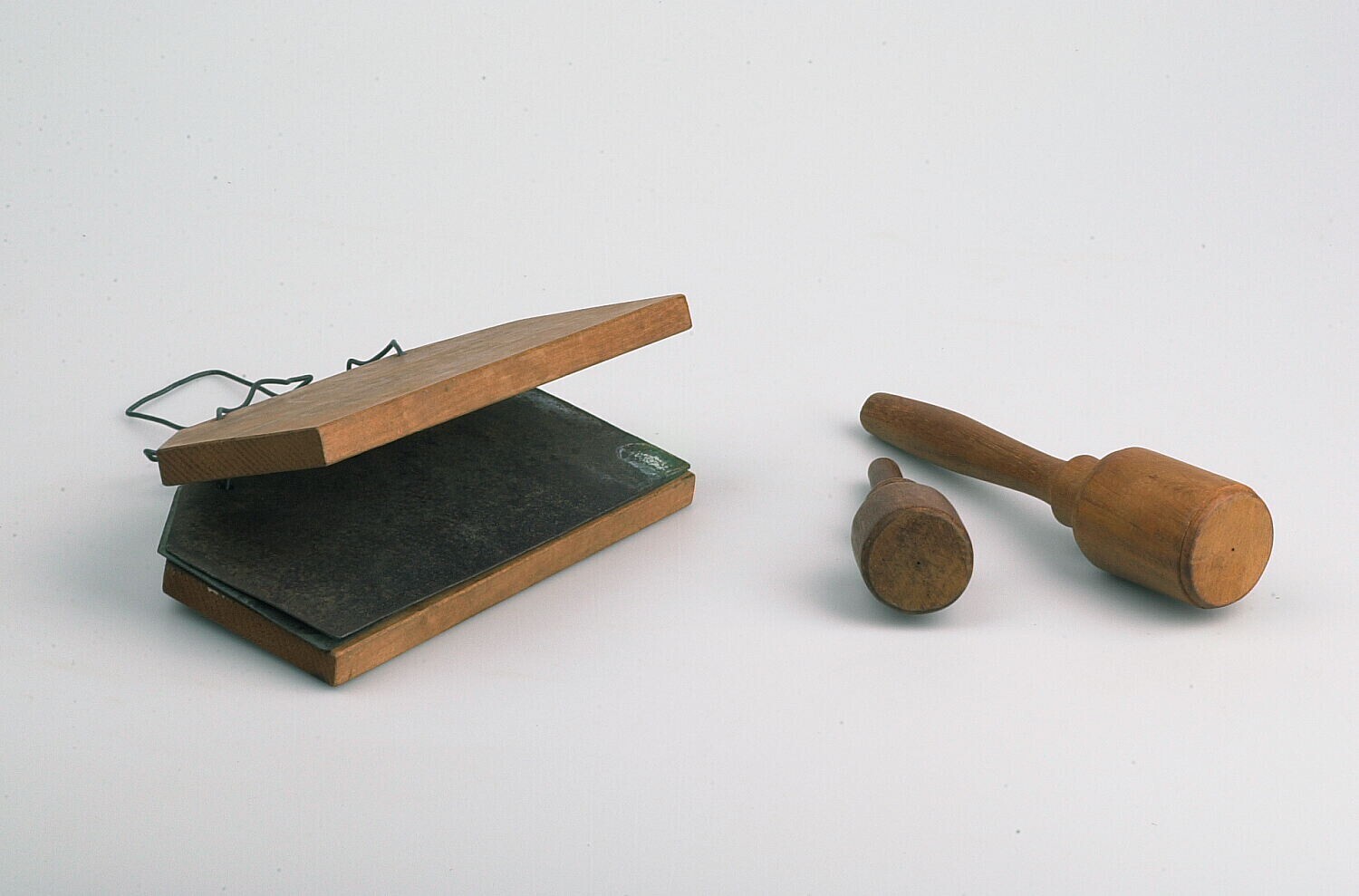Geraasmaker van hout en metaal