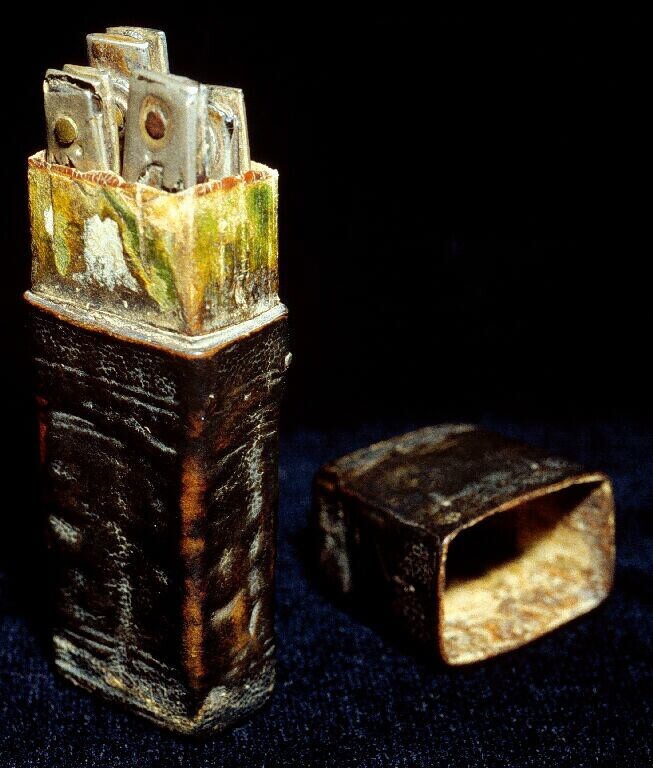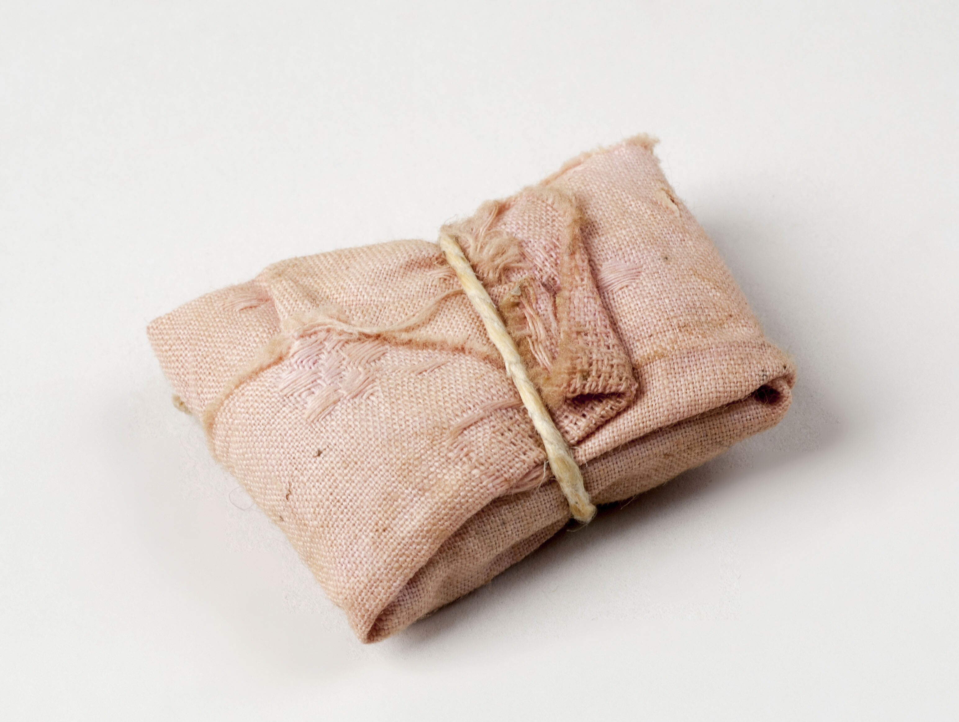 Twee met inkt beschreven papieren in katoenen zakje