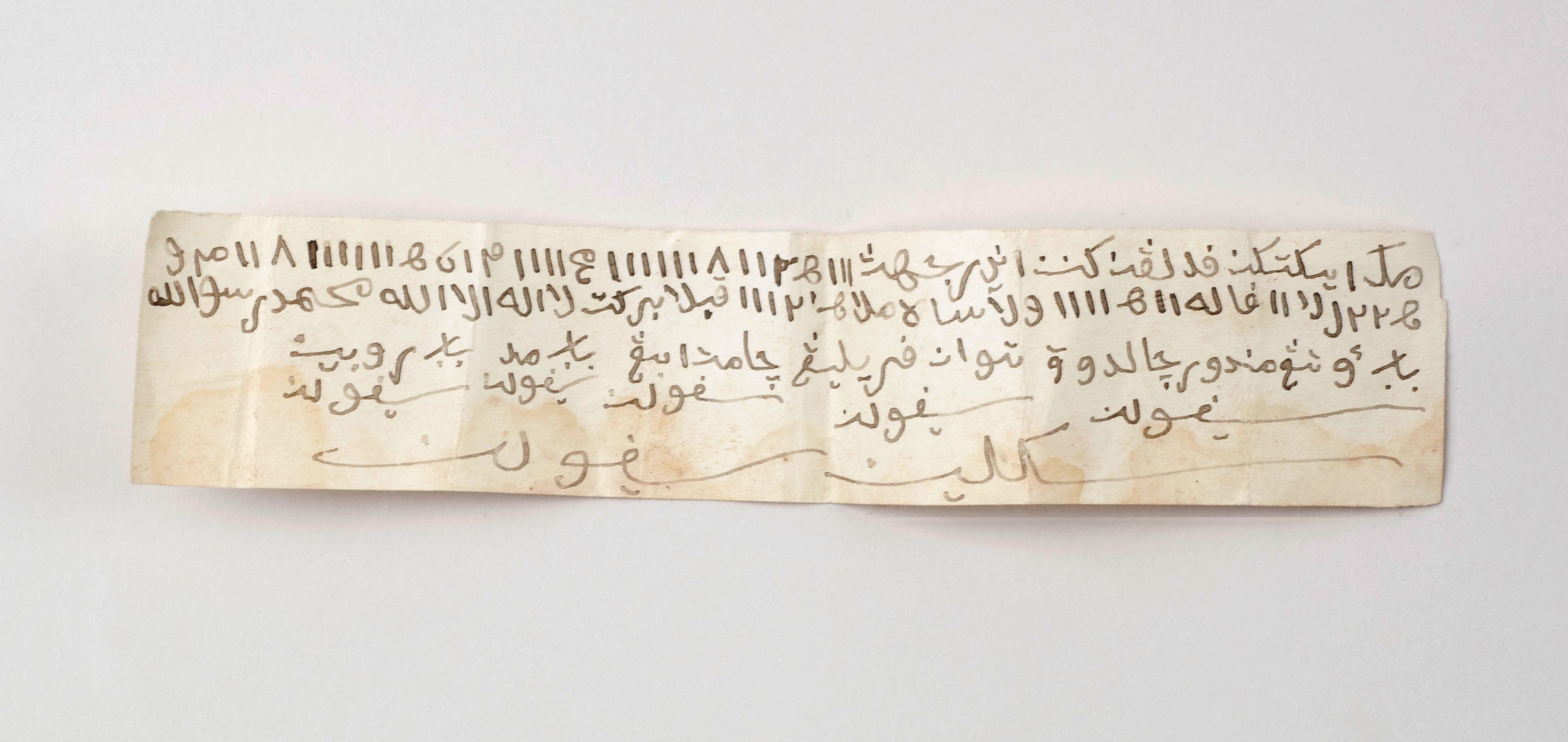 Papieren djimat gevonden in een hoofddoek van Hasan