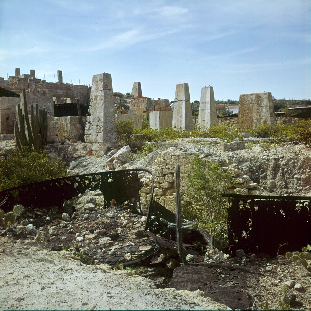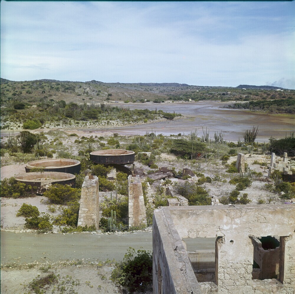 Zicht op de voormalige olieraffinaderij Lago olieraf...