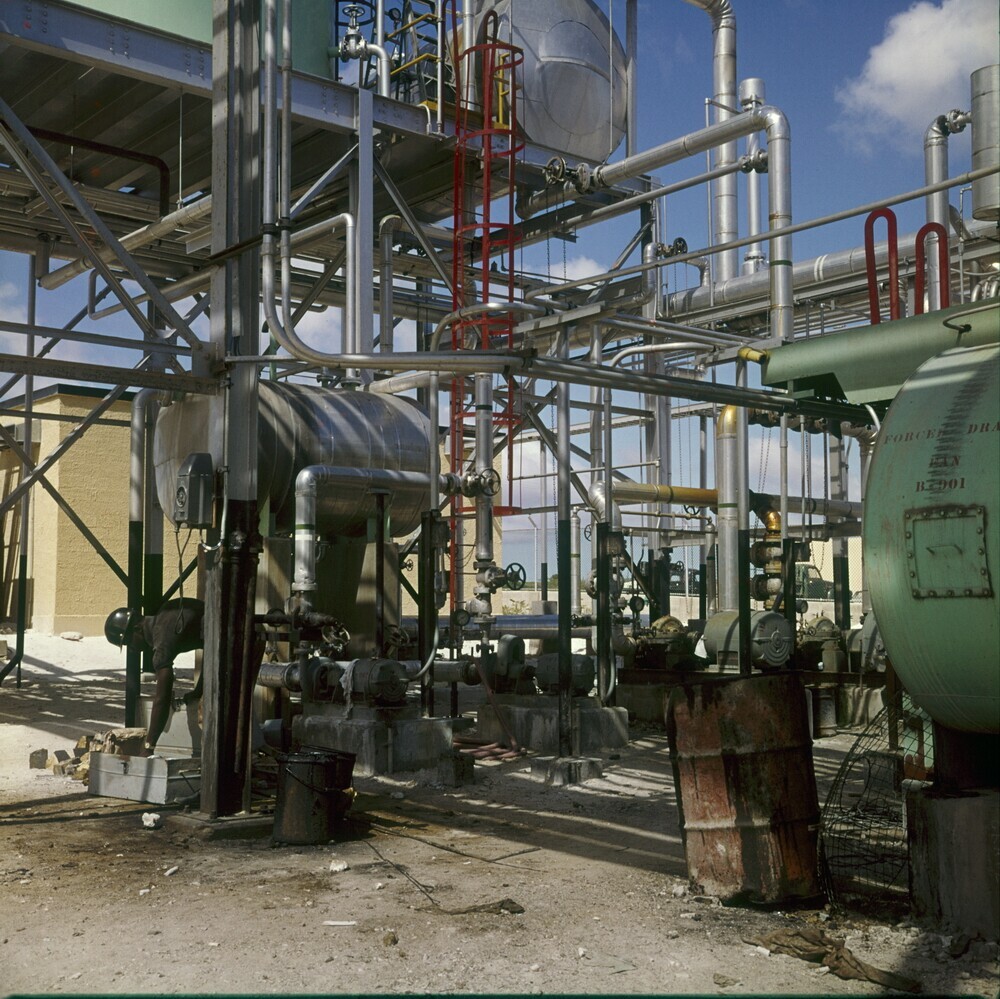 Destillatieketels, de fabriek en stoomketels op Lago...