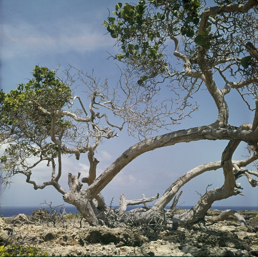 Dividiviboom in het landschap in de omgeving Sabana ...